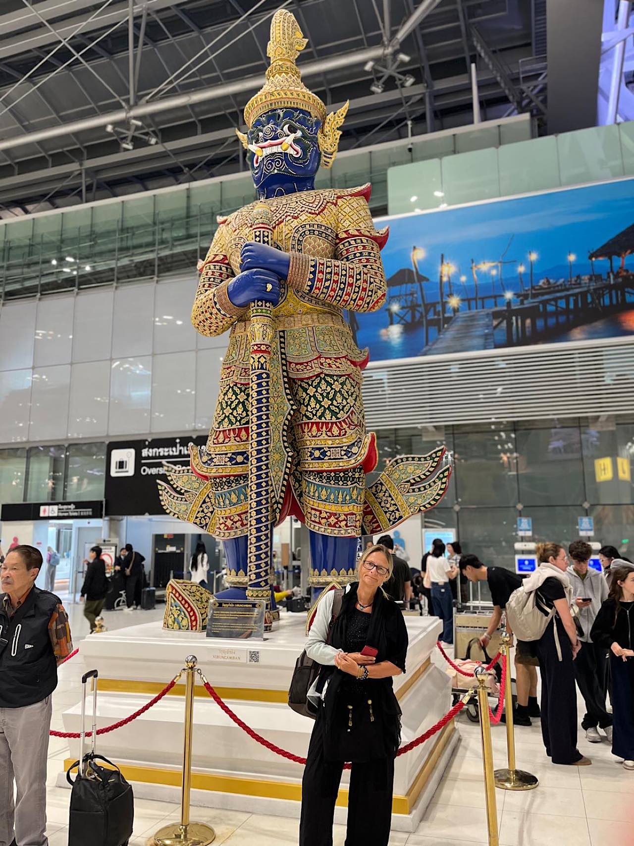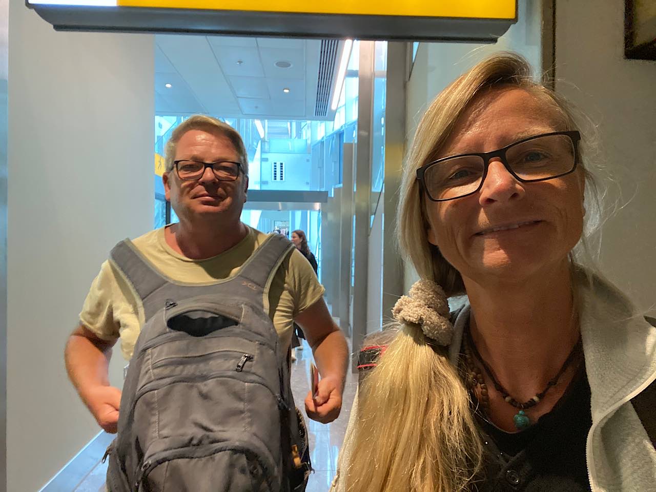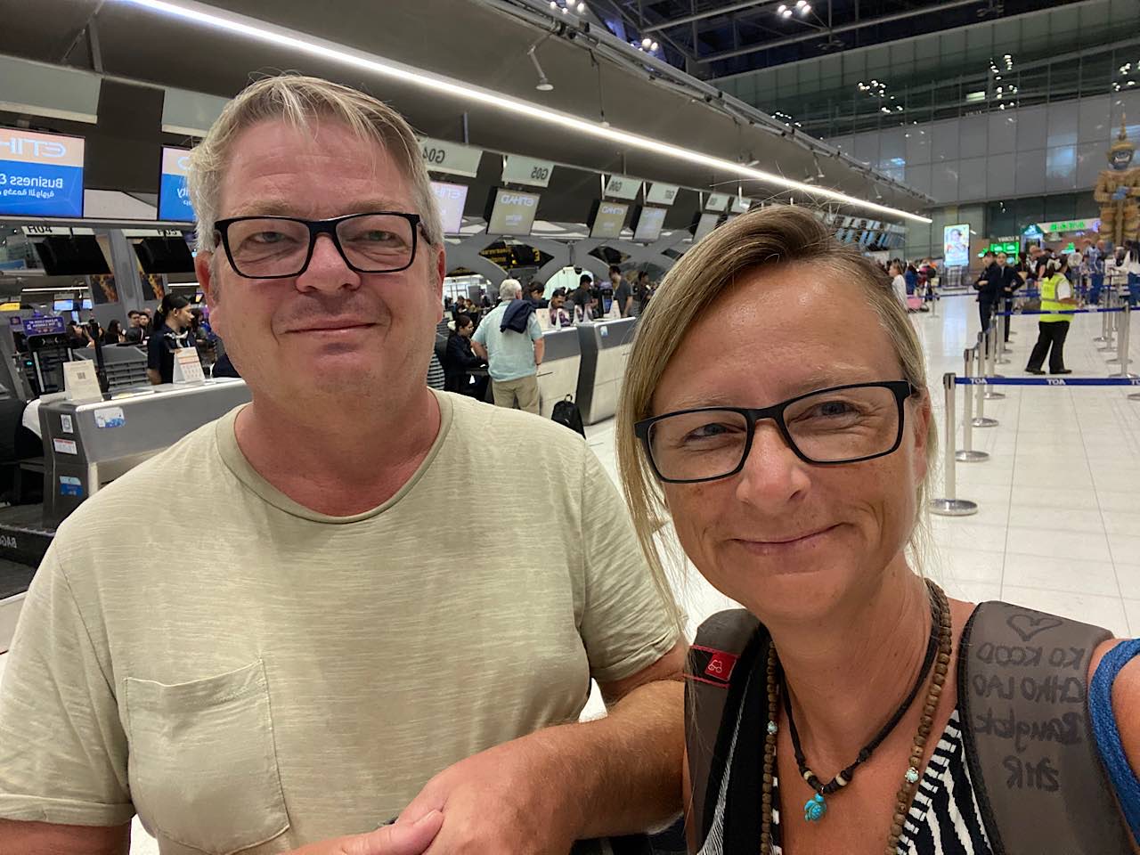 Das Taxi wartet pünktlich und mit viel Verkehr erreichen wir mit Tausend anderen Menschen den Flughafen BKK. Das einchecken ist trotzdem rasch hinter uns gebracht . Dann darf Babsi ihren Sommer Mode Style ablegen und den Winter Mode Style anziehen. Eine Neuigkeit ist dabei…die gelben Petra Schuhe bleiben an meinen Füssen, in Zürich werde ich darin Socken tragen 🤭😅🤪 Stefan meinte, er laufe dann zehn Meter hinter mir….Egal, ich werde das so durchziehen!