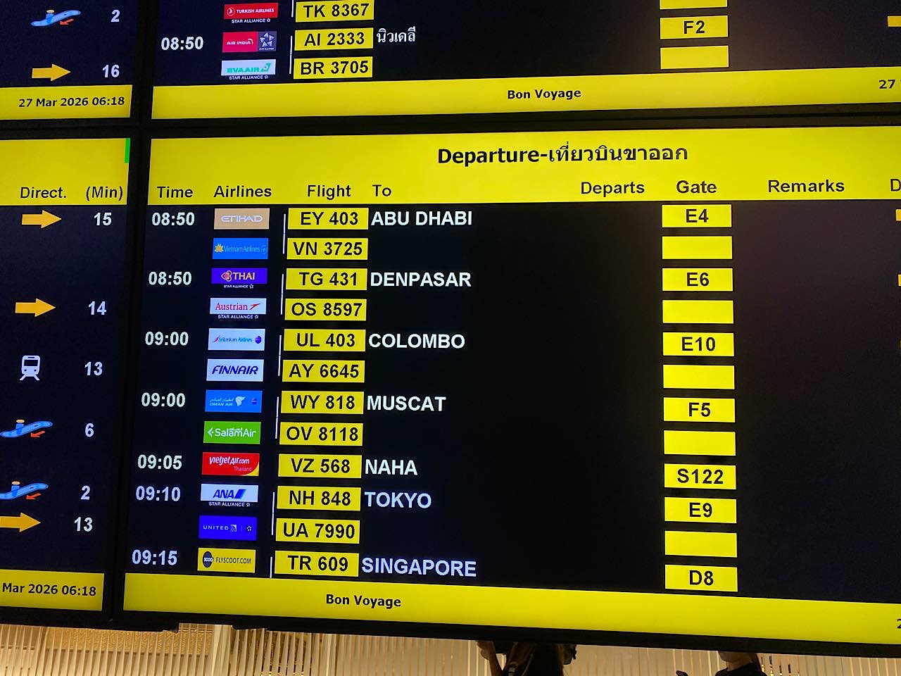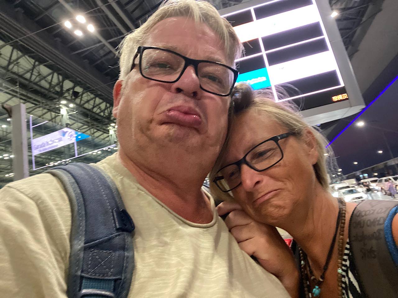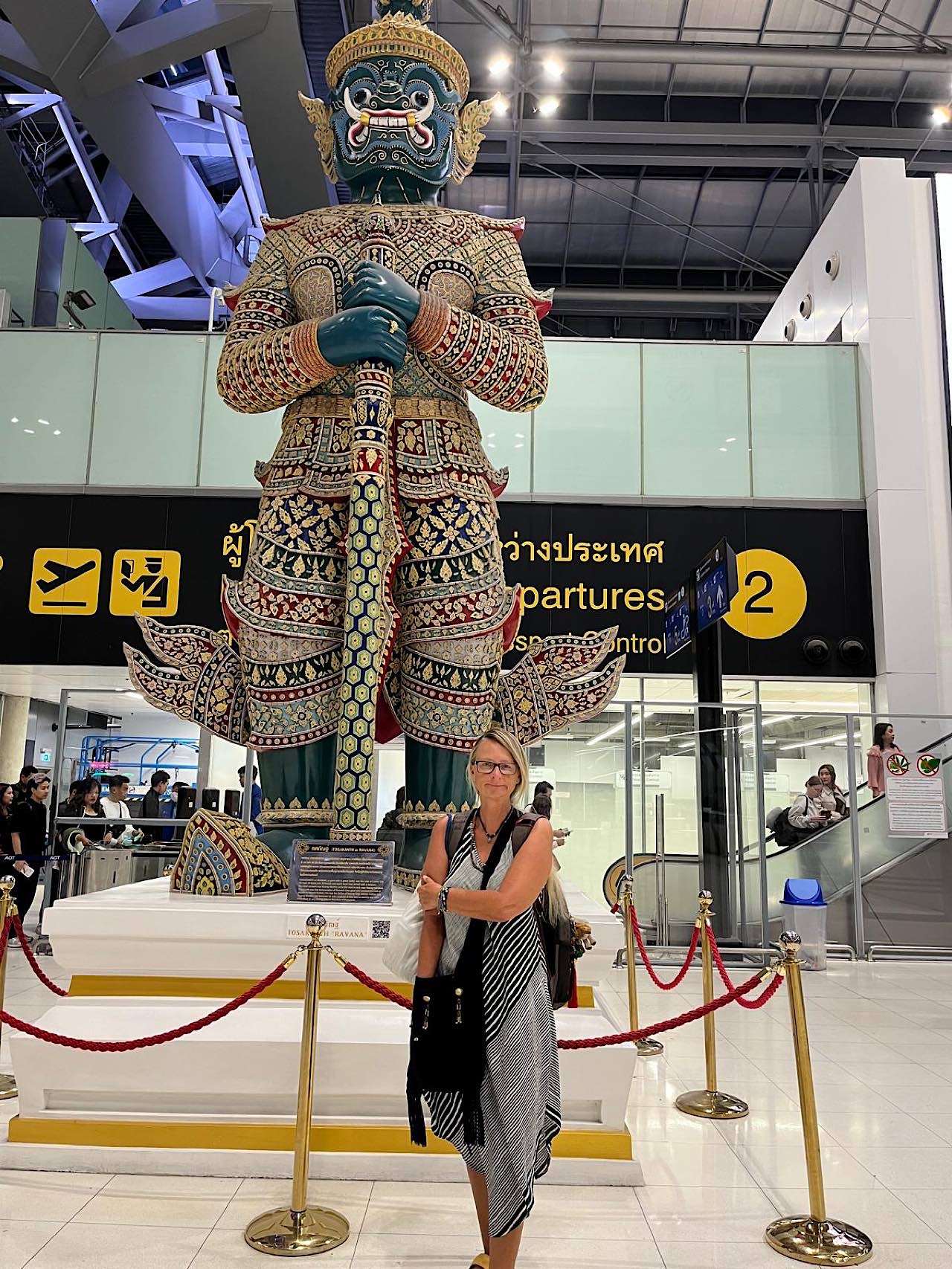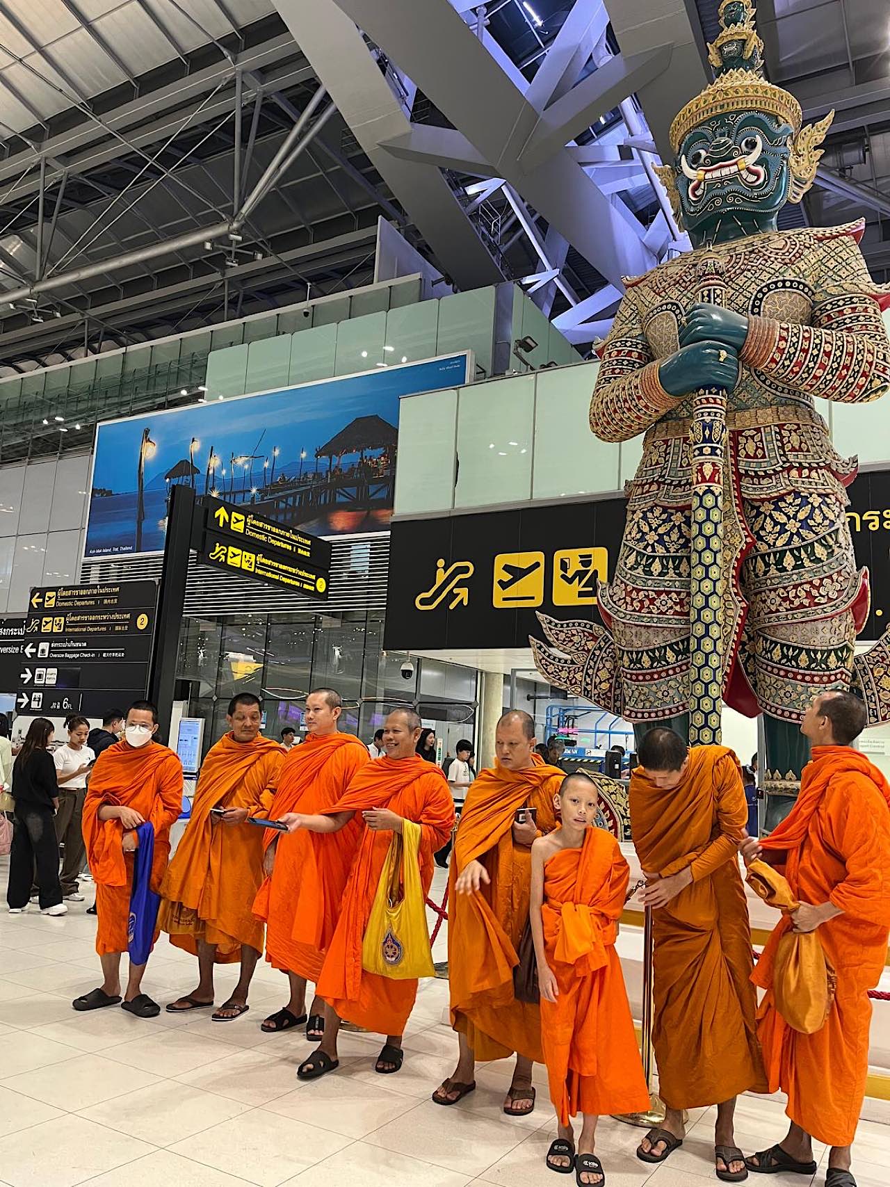 Das Taxi wartet pünktlich und mit viel Verkehr erreichen wir mit Tausend anderen Menschen den Flughafen BKK. Das einchecken ist trotzdem rasch hinter uns gebracht . Dann darf Babsi ihren Sommer Mode Style ablegen und den Winter Mode Style anziehen. Eine Neuigkeit ist dabei…die gelben Petra Schuhe bleiben an meinen Füssen, in Zürich werde ich darin Socken tragen 🤭😅🤪 Stefan meinte, er laufe dann zehn Meter hinter mir….Egal, ich werde das so durchziehen!