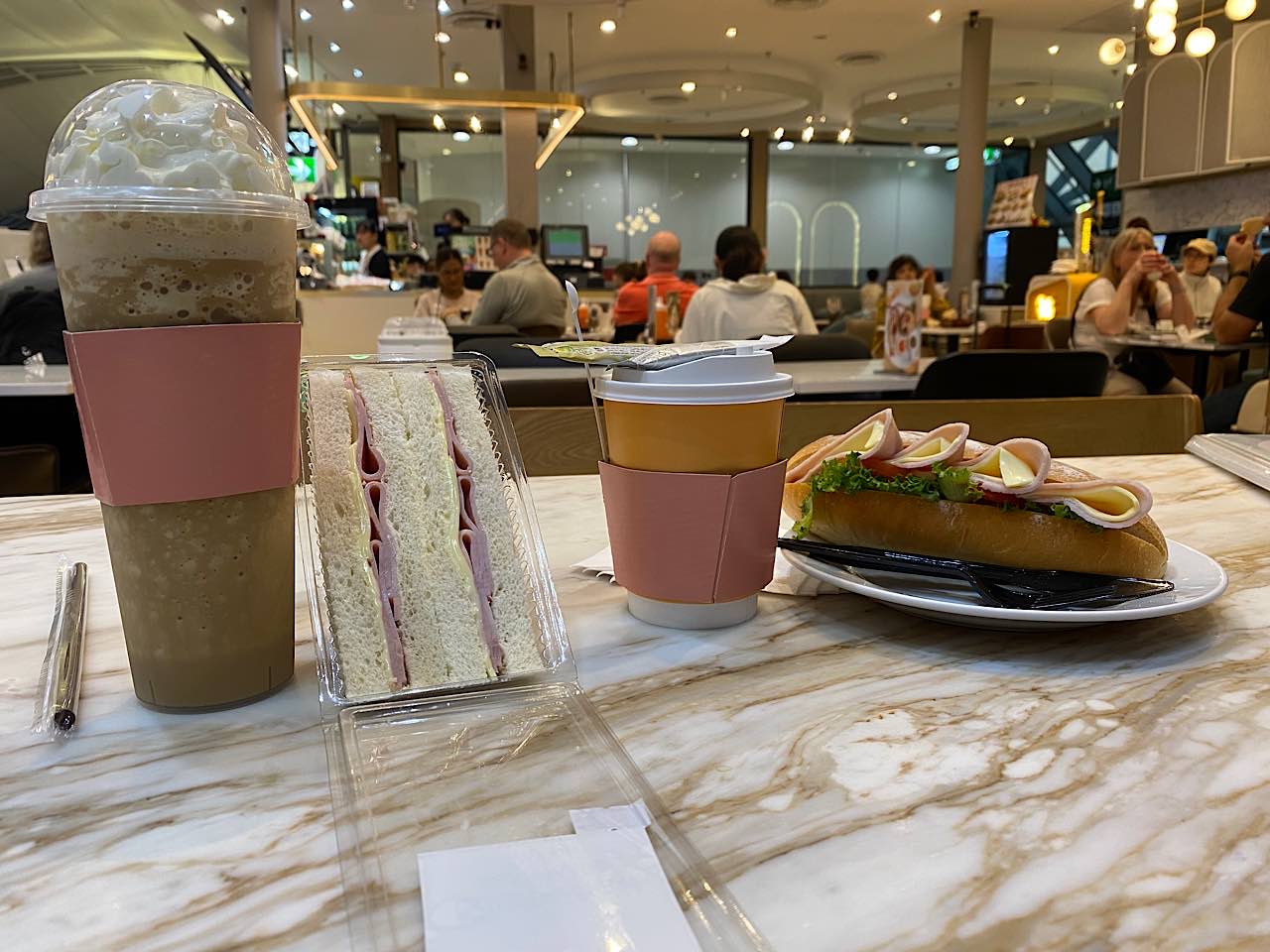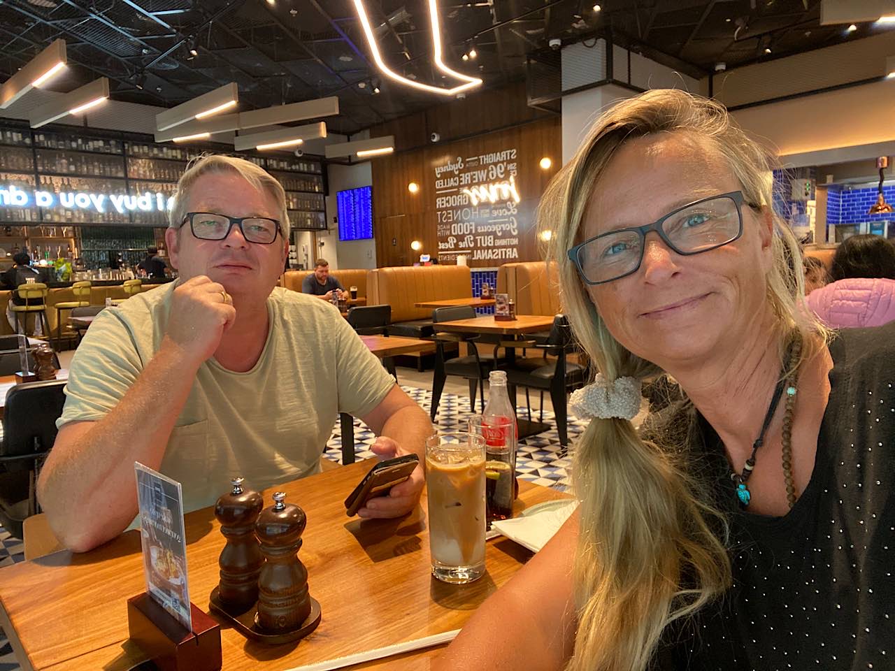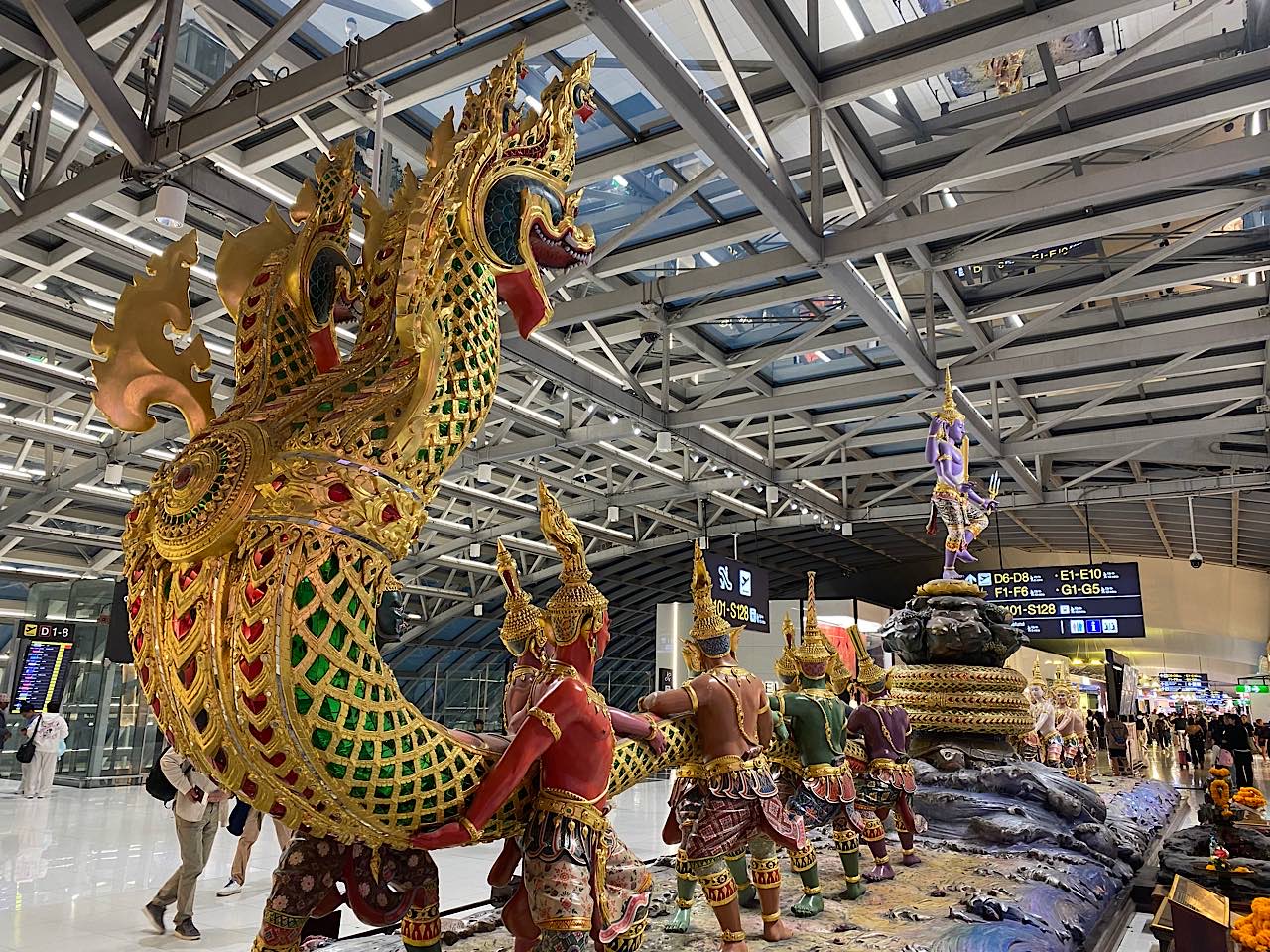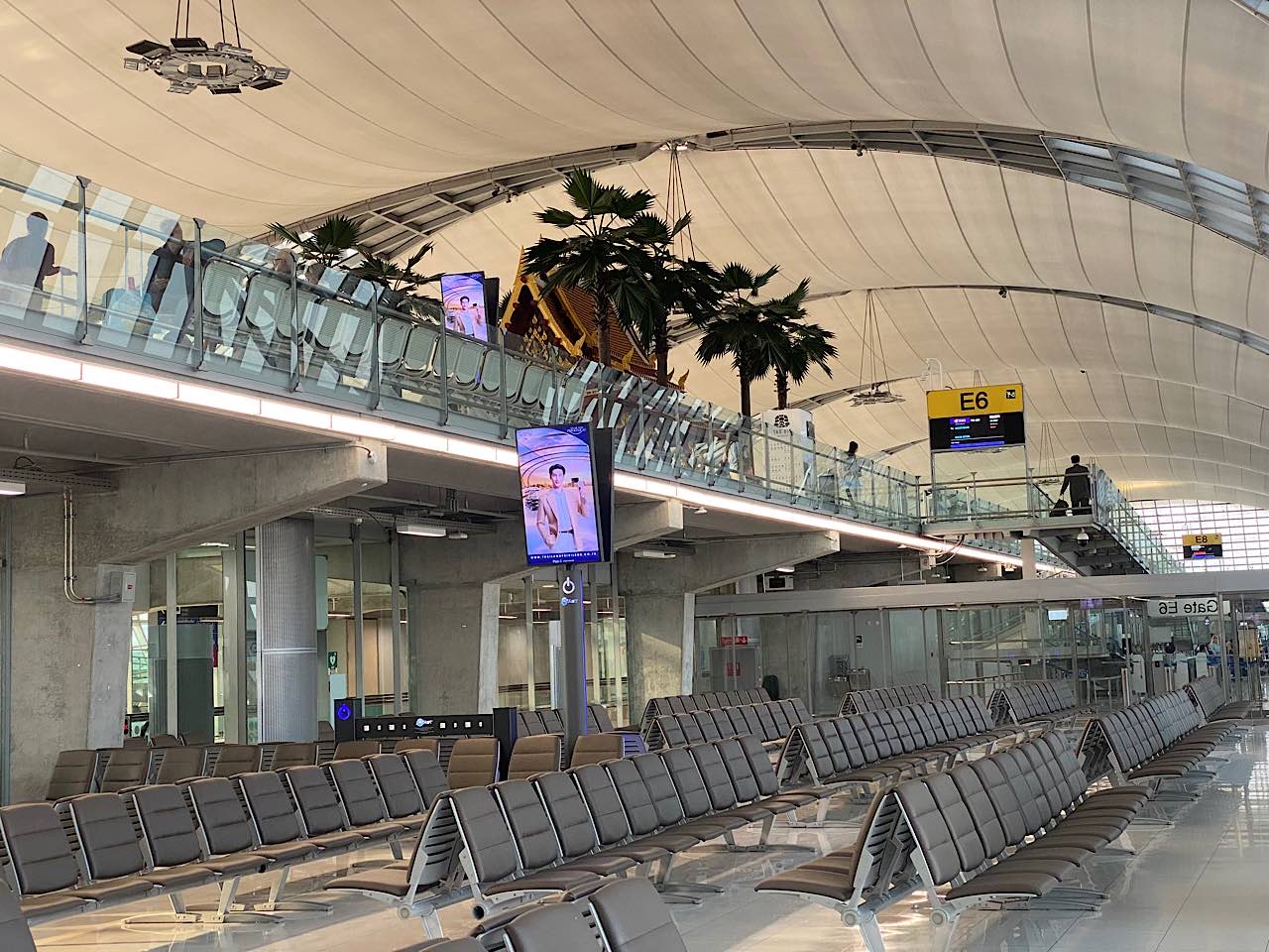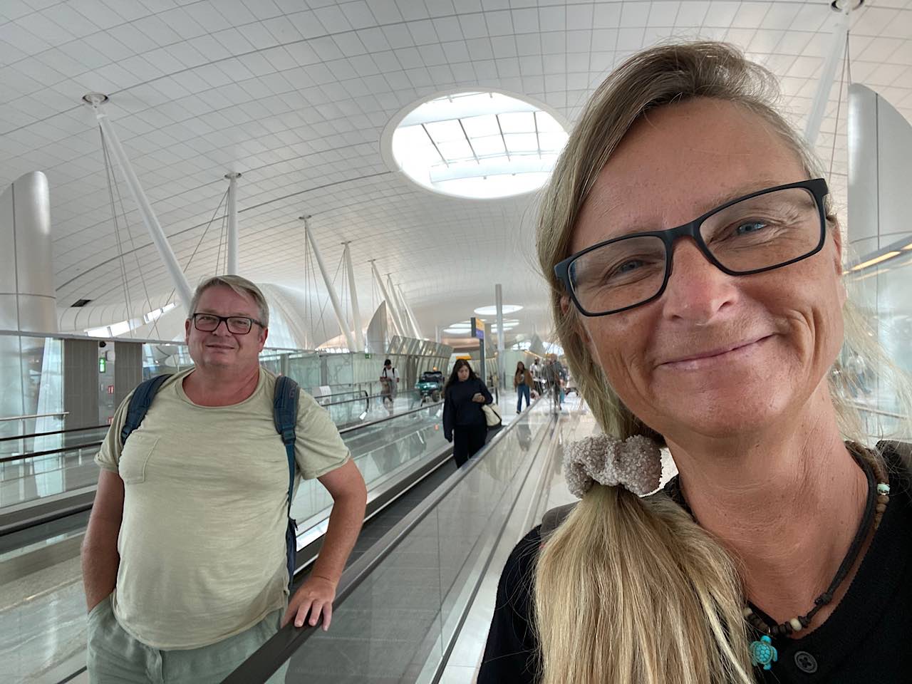 Dann die berüchtigte Rolltreppe, wir verlassen Thailand und begeben uns in den internationalen Bereich. Wir dürfen unseren Pass, nach der problemlosen Sicherheitskontrolle, selber scannen und so sind wir nun im hochklimatisierten Abflug Bereich. Wir essen etwas und lassen 1000 Bath liegen, hier ist es wie überall auf den Flughäfen, TEUER 🤪 Es macht mich auch nicht an, noch etwas shoppen zu gehen….Channel,Gucci etc sind nicht mein Ding. Mal sehen, wie lange Stefan braucht, bis er meine Socken bemerkt, ich konnte nicht bis Zürich warten, denn hier im Restaurant frieren mit die Hände ab beim bloggen und die Füsse ebenso…..