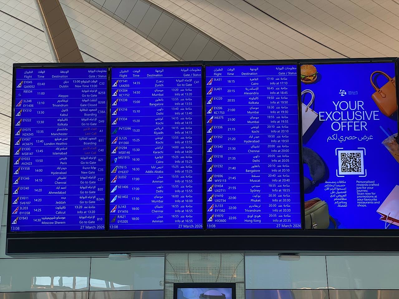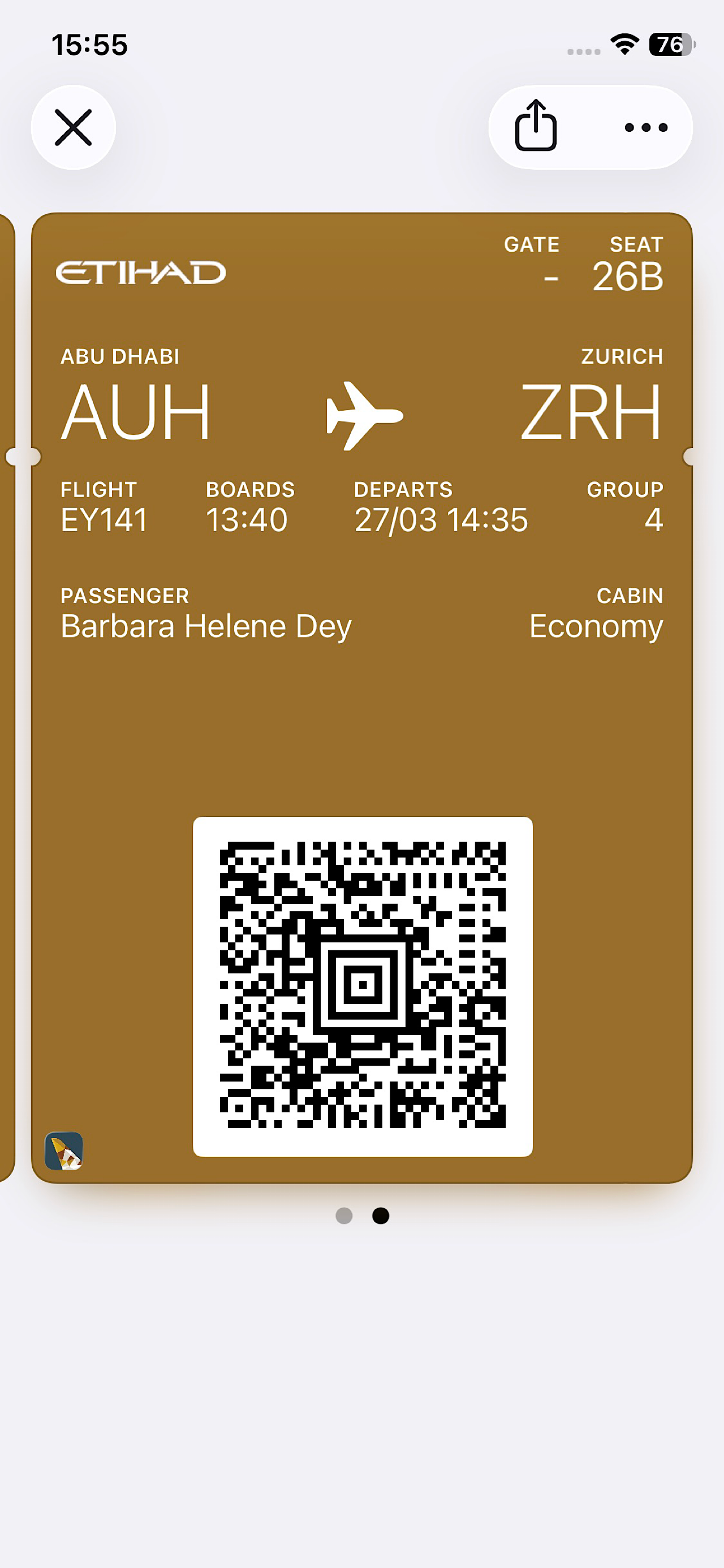 Mit wenig Verspätung fliegen wir los und die sechs Stunden sind mit Turbulenzen der Natur begleitet…wir landen gesund und munter in Abu Dhabi. Hier hoffen wir dass es weiter gehen wird. Wir dürfen eine Stunde warten, bis wir unser Gate erfahren, das Ethiad APP weiss schon, dass wir in Zürich erst nach 20.00 Uhr landen werden….Fragen um Fragen…We will see … Wir haben noch eine Erfrischung genossen und bezahlen stolze 12 Stutz für einen kalten Latte und eine Cola 😅 und wir werden alle fünf Minuten gefragt, ob wir nochmals etwas trinken oder auch essen wollen? Sogar beim Bezahlen werden uns Schokolade oder Nüsse zum Kauf angeboten…..nach Thailand sind wir hier definitiv überfordert und fühlen uns gestresst / bedrängt ….. mit so viel Verkauf Strategie!