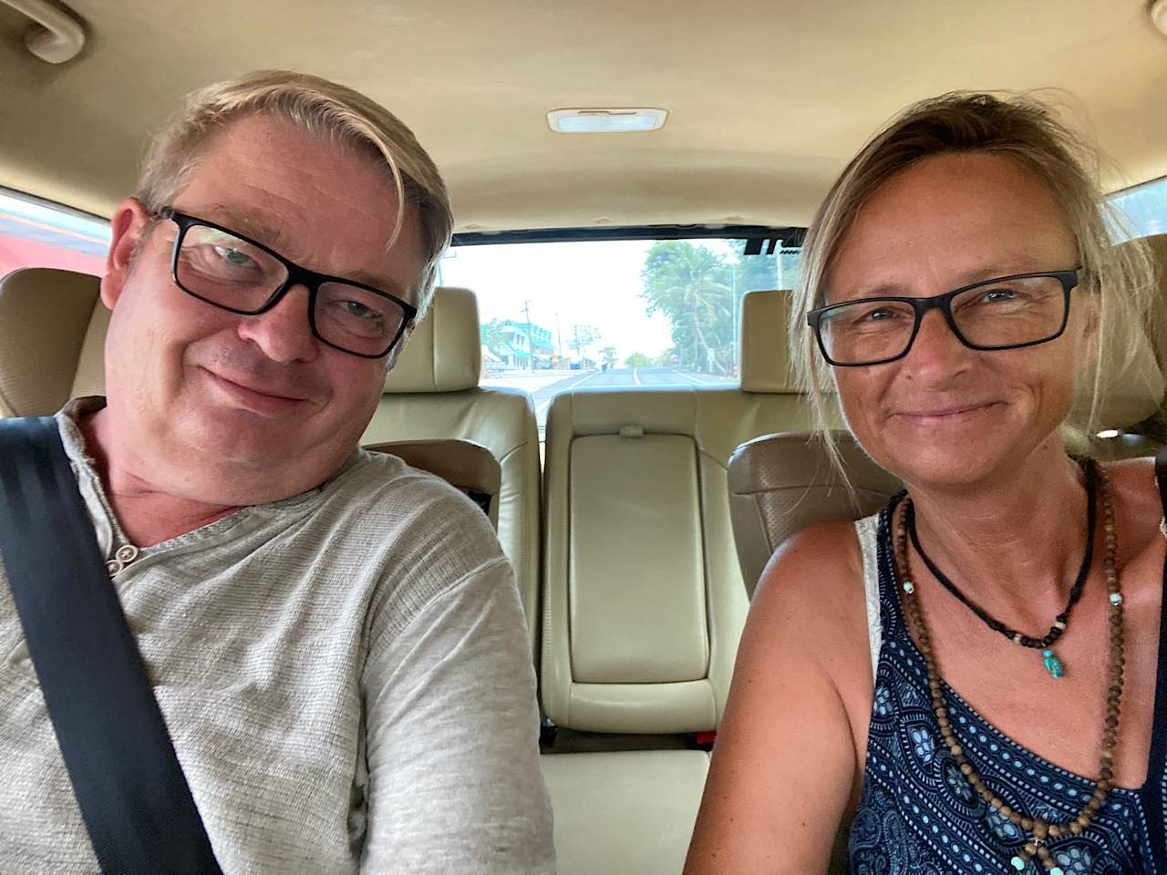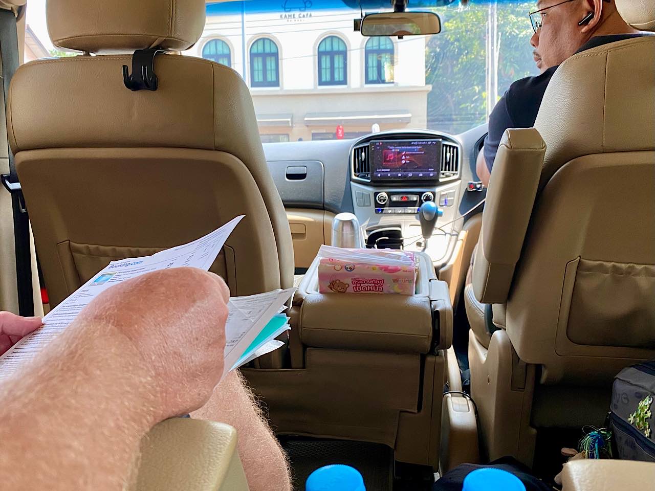 Um elf Uhr ist unser privates Taxi da und wir fahren wie Könige im grossen und bequemen Auto in drei Stunden nach Bangkok. Der Chauffeur sieht aus wie ein Mönch und ist sehr nett, sogar einen Pipi Halt gibt’s dazu 😂😀 Kostenpunkt: 3000 Bath, die sich so was von gelohnt haben ! Wir geniessen die Fahrt durch Thailand und das viele Grün und die Dörfer/Städte….ich nicke sogar kurz ein auf dem King Sitz-Sessel 🤭😅
