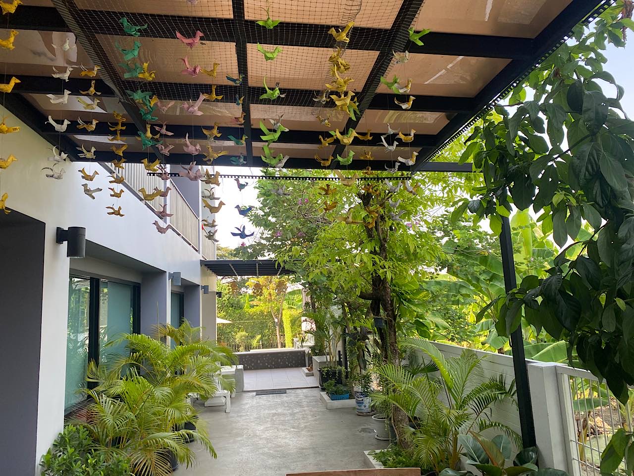 Unser neues Hotel ist hübsch, 15 Minuten vom BKK entfernt. Wir sehen viele Flugzeuge die ankommen, cool, das wäre für John Curtis ein Traum 😉 Das Zimmer ist gross, sauber und das Bad hat eine getrennte Dusche mit einem super Wasserstrahl! Für 27 Franken die Nacht, Top 🔝