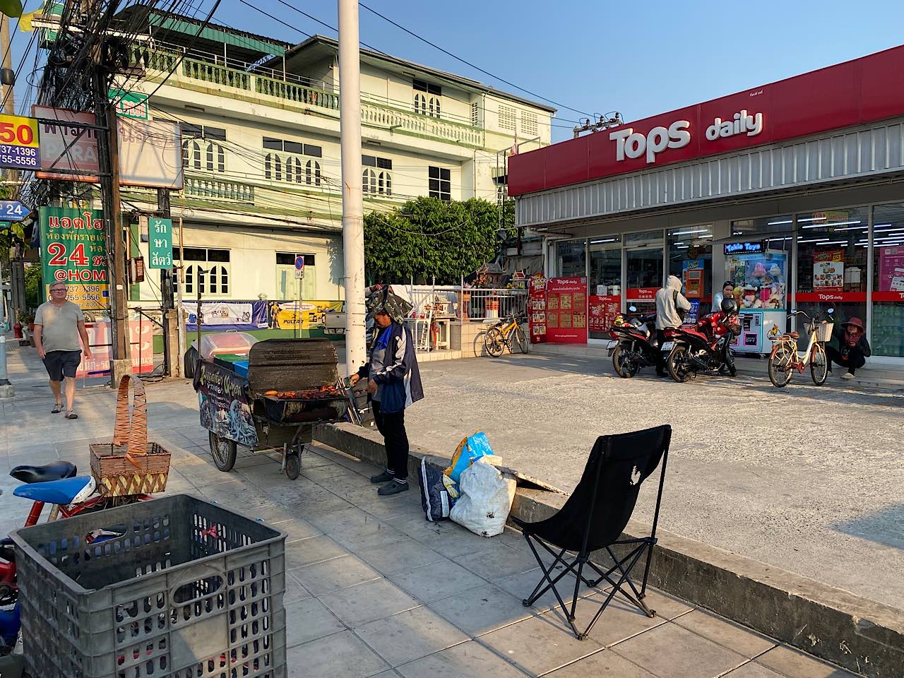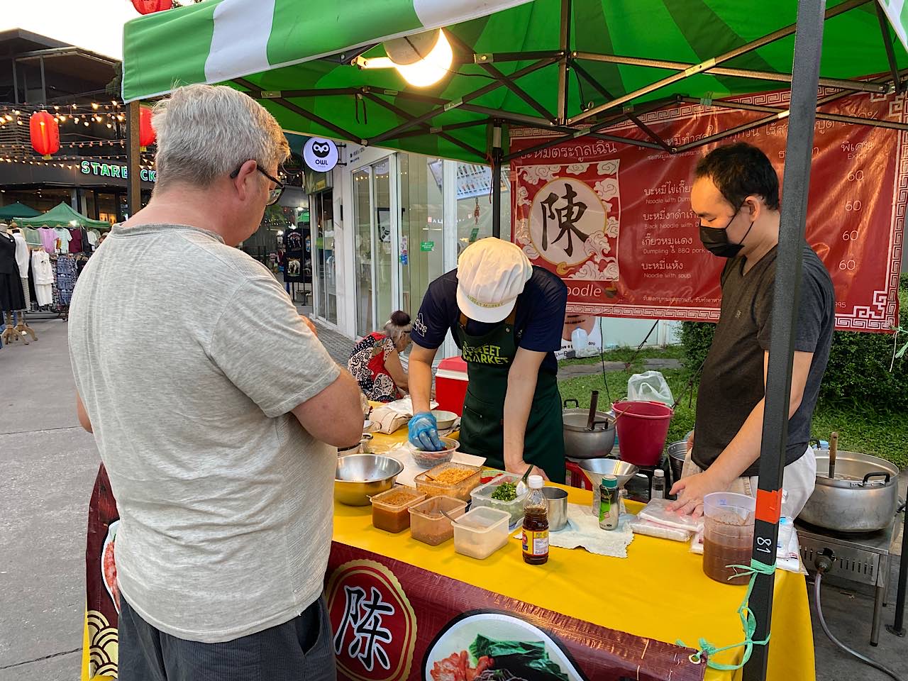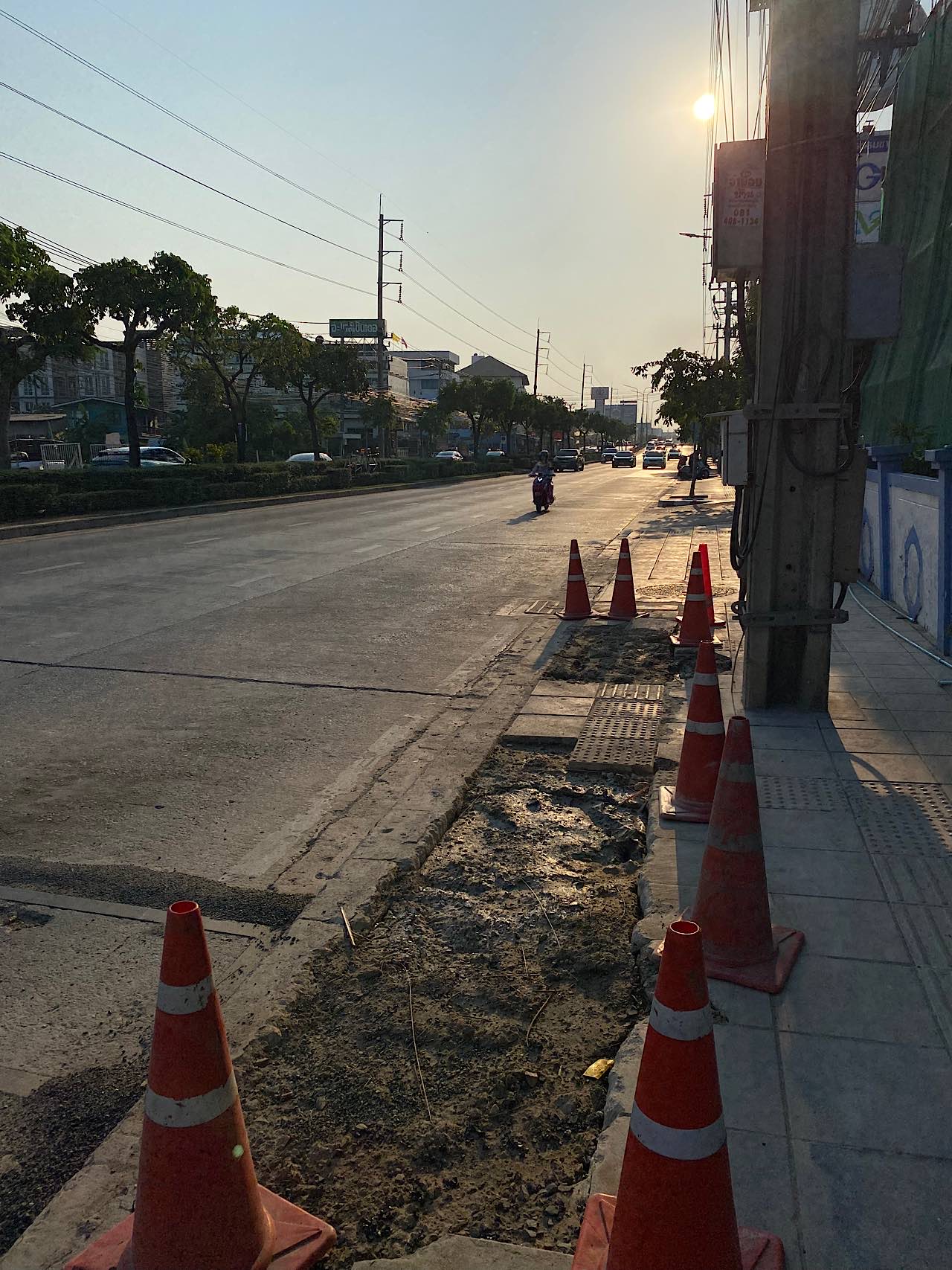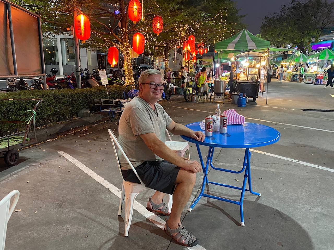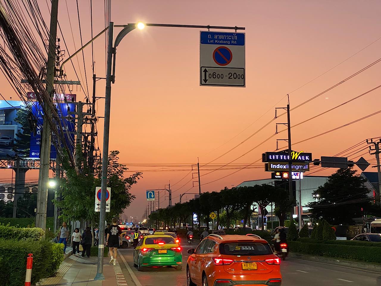 Der Verkehr ist beachtlich und die Fussübergänge natürlich nicht koordiniert. 84 Sekunden Rot, Vorwärtskommen bis zur Mitte der Strasse. 84 Sekunden Rot und dann haben wir es geschafft. Der Nachtmarkt ist klein aber fein, es gibt ein Patthai für 30 Bath! Wir essen nach dem Shoppen super lecker, Kostenpunkt: 100 Bath ! Was überraschend ist, viele scheue streunende Hunde 🤔😢 Der Sonnenuntergang war mit einem tollen Orange im Himmel 🧡💛🧡