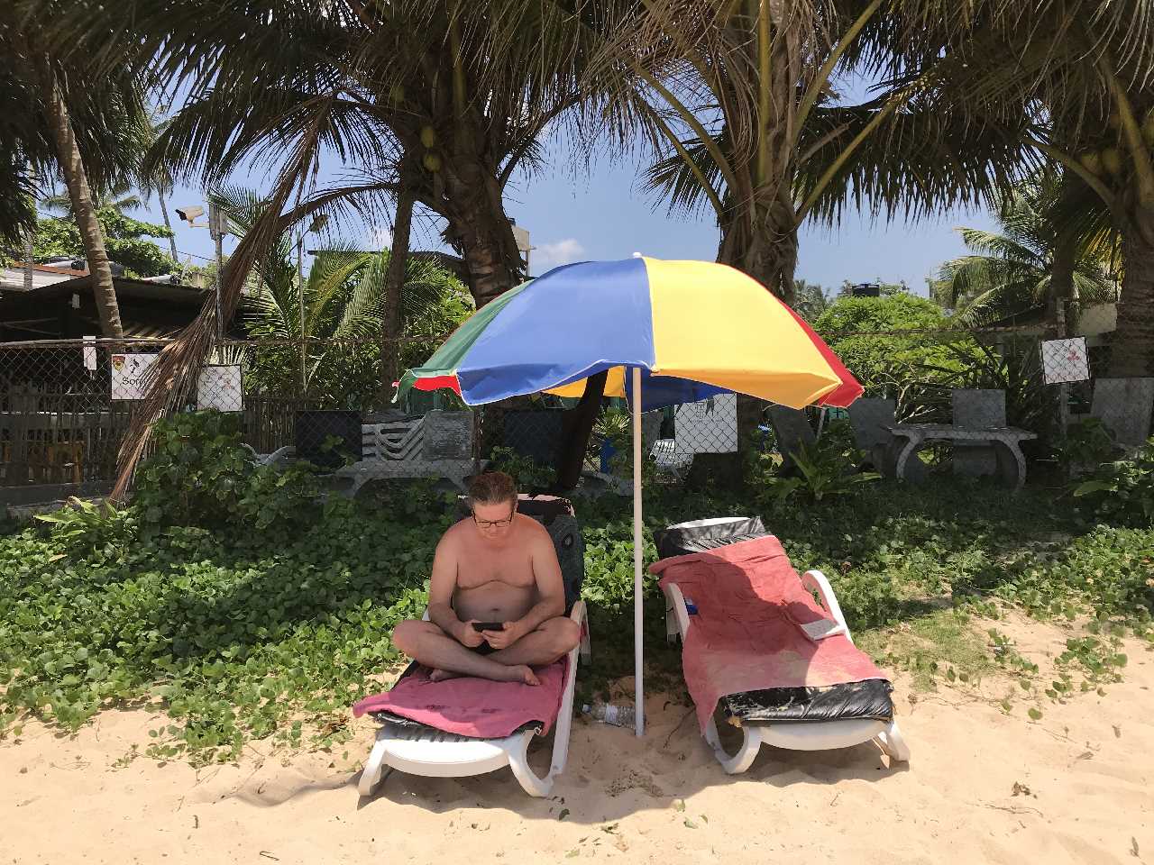 Wir verbringen den Tag am Strand, nehmen Liegen vom Resort. Beim Mittagessen, setzt sich ein junger Mann einfach drauf. Er begutachtet meine Tasche, schiebt mein Tuch und Kreuzworträtsel einfach zur Seite und als wir wiederkommen, findet er habe nichts falsch gemacht, unglaublich!