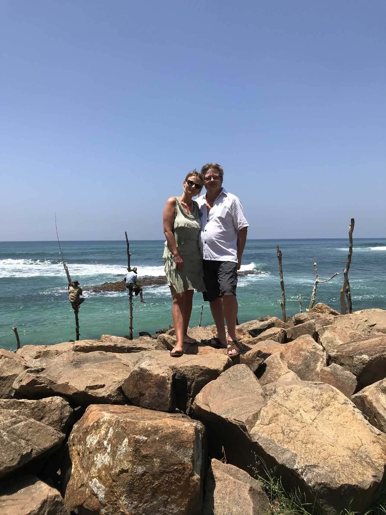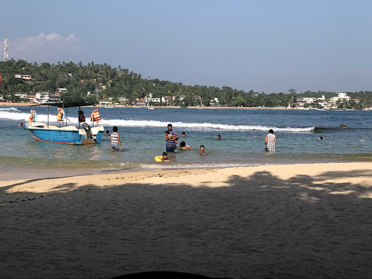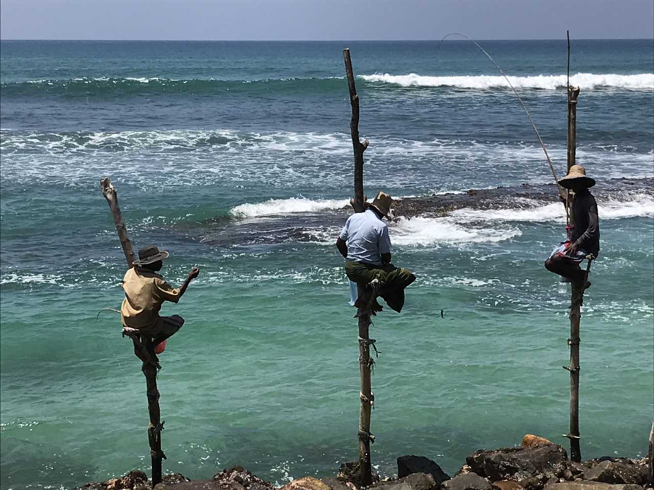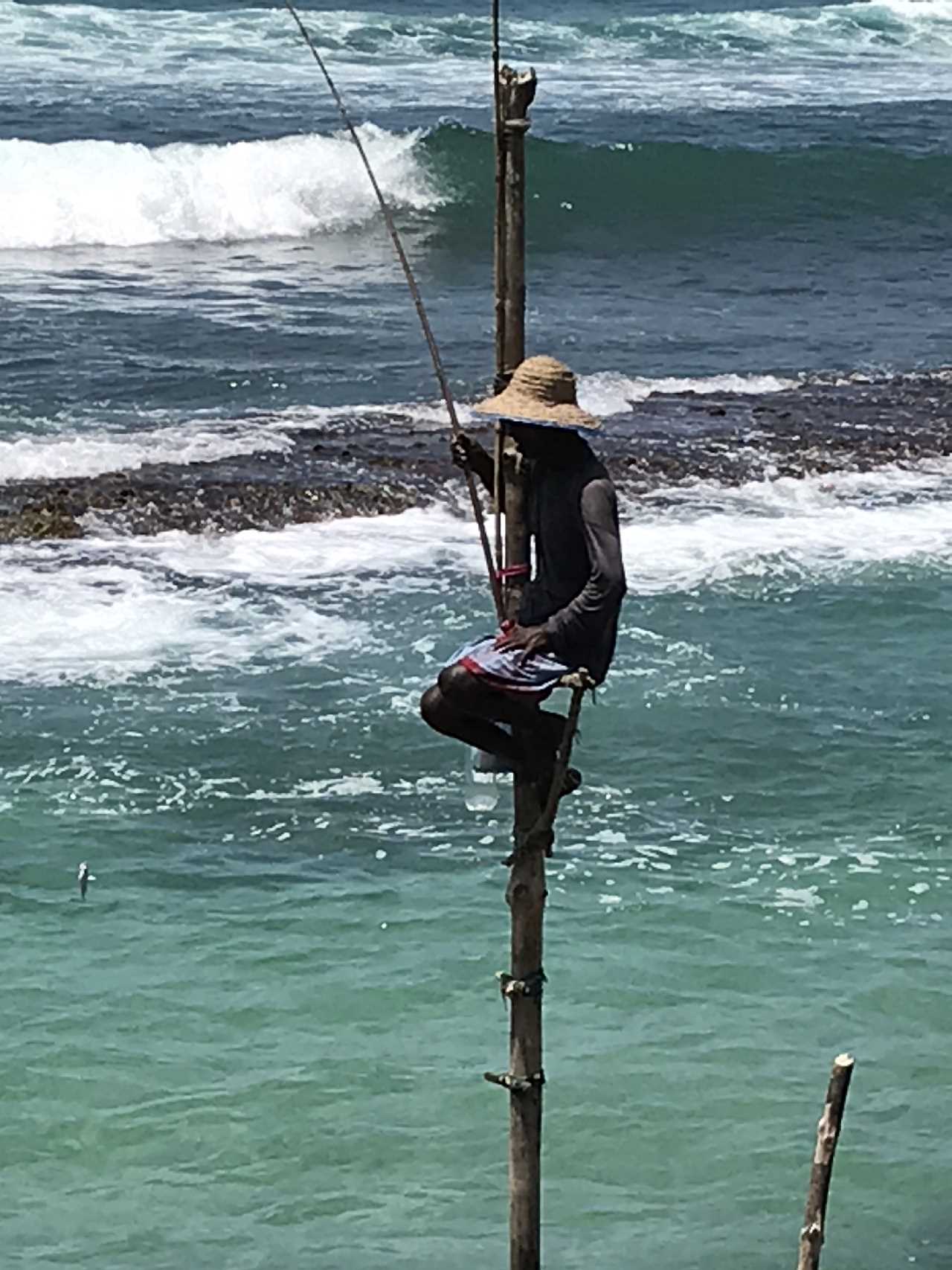 Es gibt nichts schöneres als am Sonntagmorgen in die Wellen zu stehen und ihre Kraft zu spüren. Mega schön ! Die Sonne scheint und wir gehen heute weiter nach Unawatuna, 30km von hier. Letztes Frühstück vor dem Bungi, dann Tuck Tuck um elf Uhr. Der Fahrer war gut, Verkehr hoppla. Fischerbild gemacht für 200 Rupien.