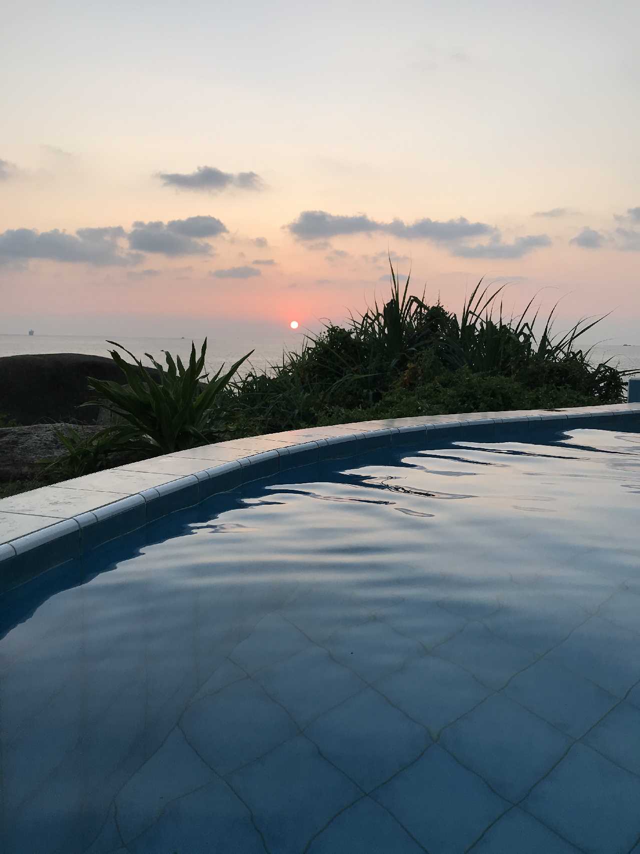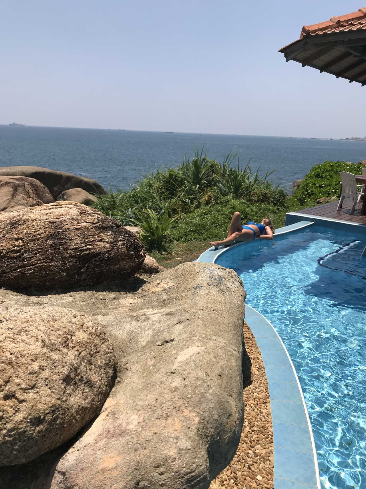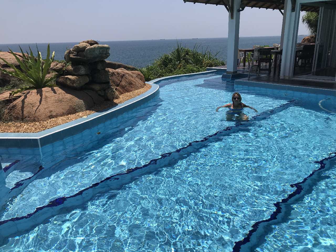 Unser neues Heim steht auf den Klippen mit wahnsinnigem Ausblick auf unser geliebtes Meer. Selbst vom Bett aus können wir es bewundern. Der Pool ist infiniti und schön warm, mit Erfrischung hat er nichts gemeinsam. We are happy, ruhige Lage, wunderschöner Ausblick, grosses Zimmer. Thats great! Am Strand gewesen ( 8 Minuten zu Fuss ) und den Einheimischen zugeschaut beim bädälä. Frauen gehen mit den Kleidern ins Wasser!