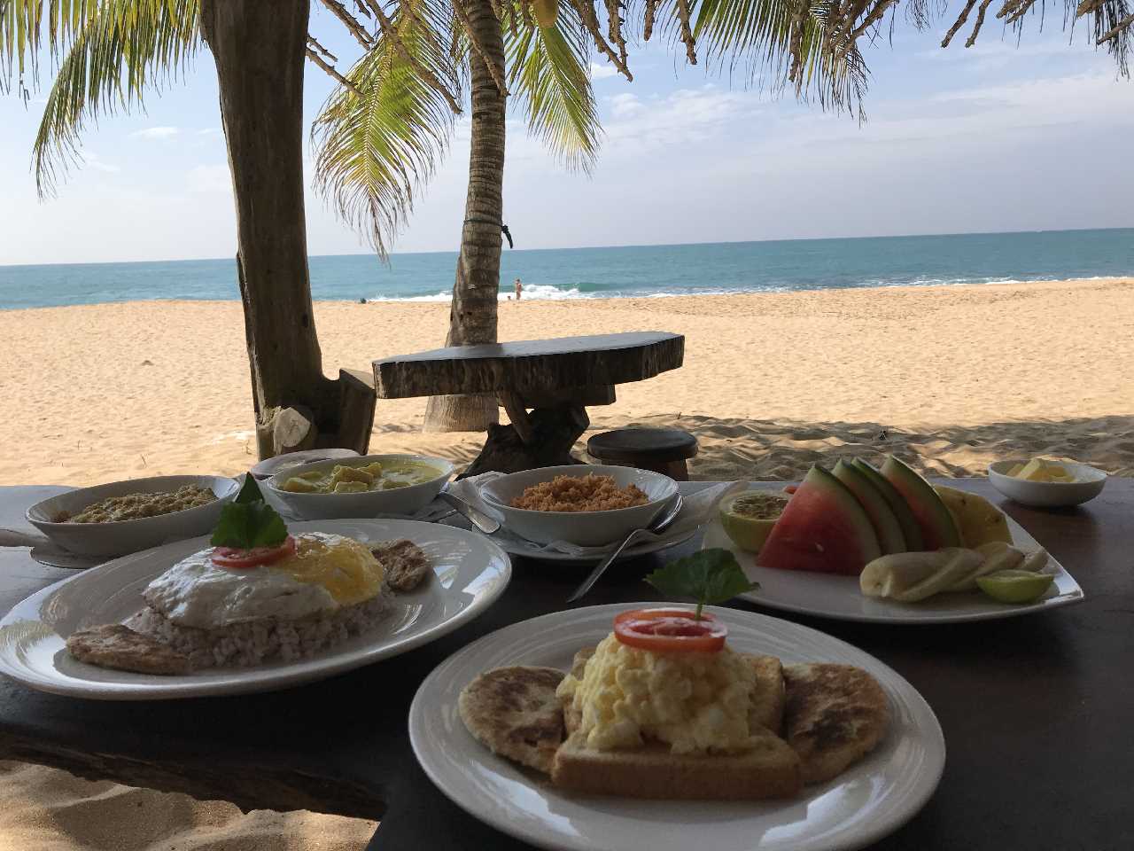 Wir Frühstücken mit den Füssen im Sand und mit bombastischer Aussicht und Wellengetöse.