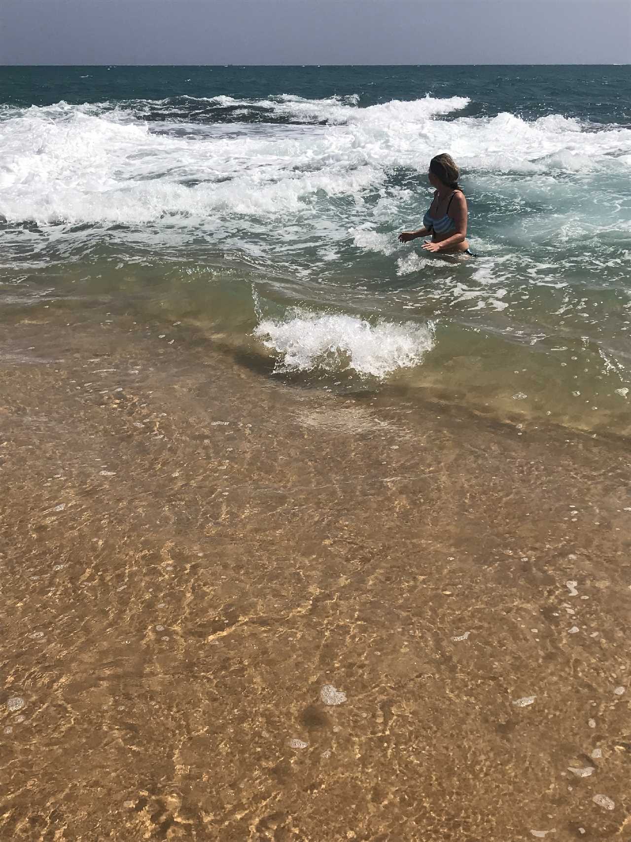 Wir ergattern eine mega Liege vor dem Naturpool chillen und geniessen jeden Sonnenstrahl,also ich, fünf Minuten lang an der prallen Sonne,andere den ganzen Tag. Steve im Schatten. Wir kämpften buchstäblich gegen den Sog der Wellen im Naturpool, im offenen Meer 🌊 ist das rein und rauskommen sehr schwierig mit den Wellen. Wir schaffen es phänomenal gut, smile.
