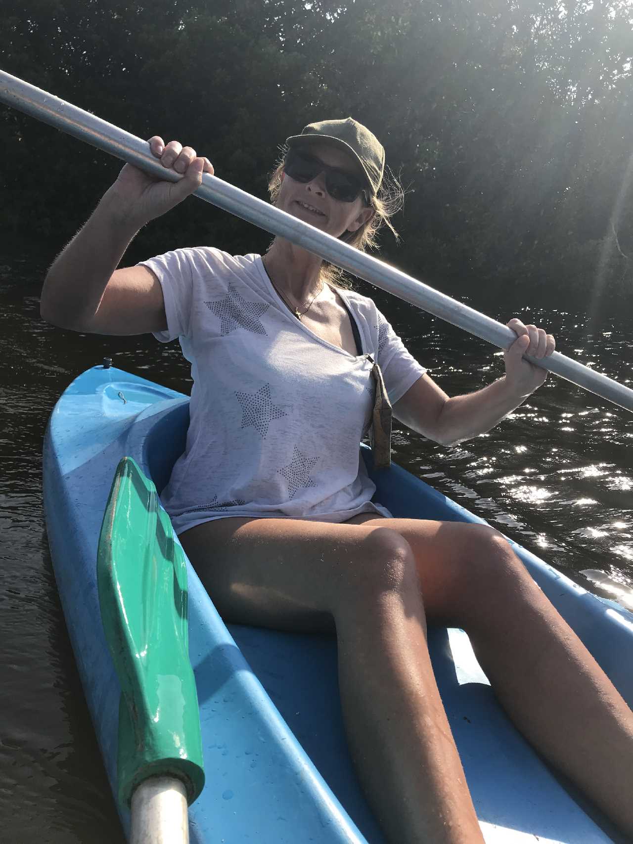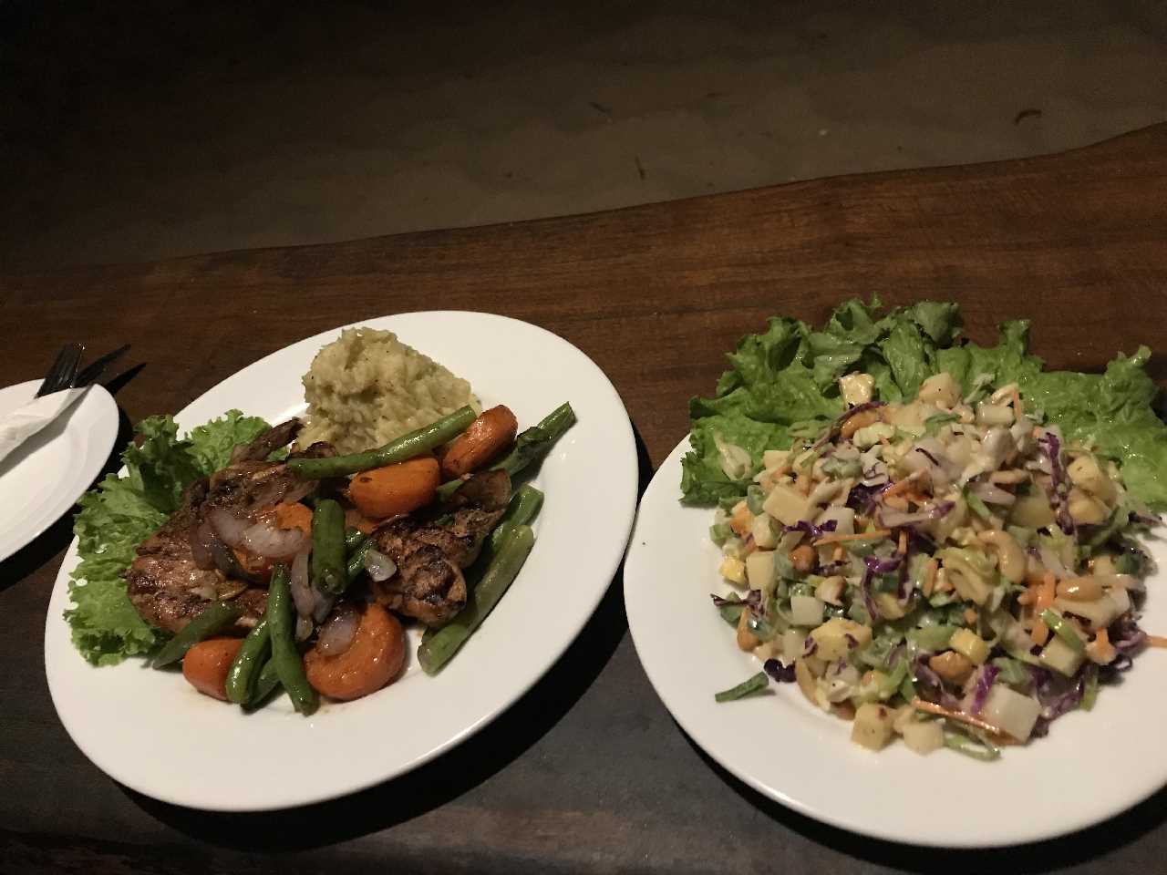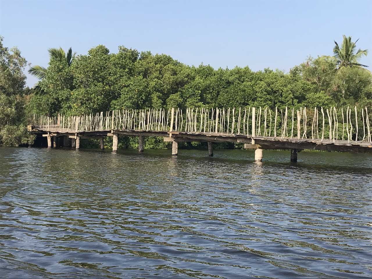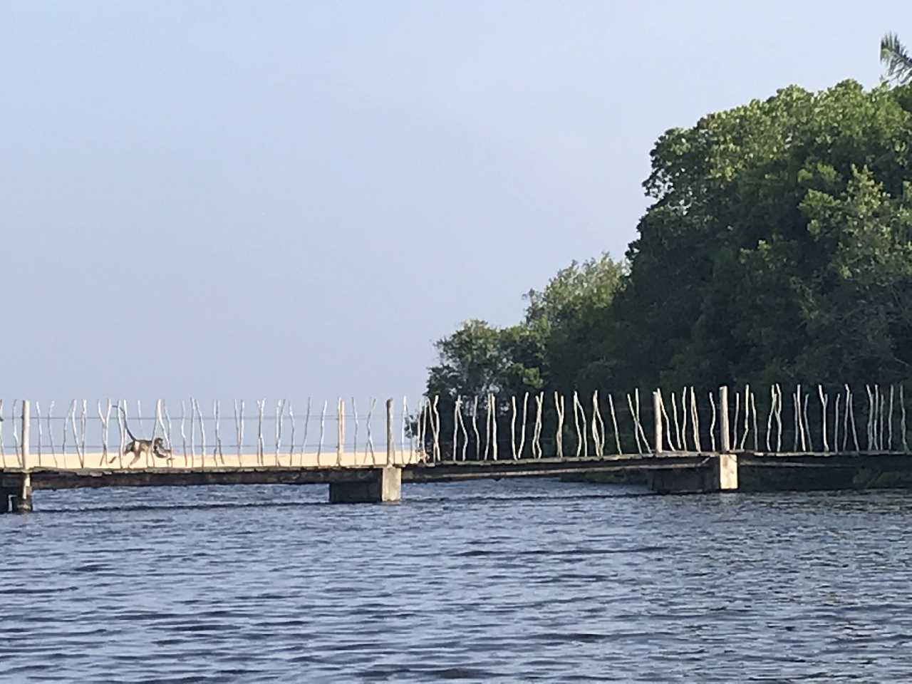 Eine Kanufahrt in der Mangrovenlagune beschert uns einen grossen Fischreiher und eine Affenfamilie die über die Brücke rennt. Fantastisch! Was für ein schöner Tag. Abendessen mit Sonnenuntergang, Salat Hawai und gegrilltes Huhn mit Stock und Gemüse. Zufrieden ab ins Bett.