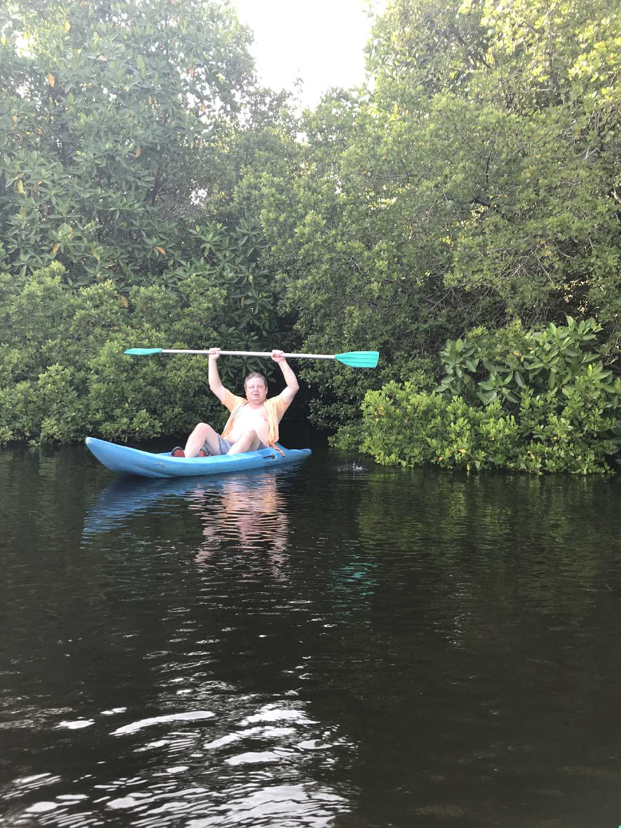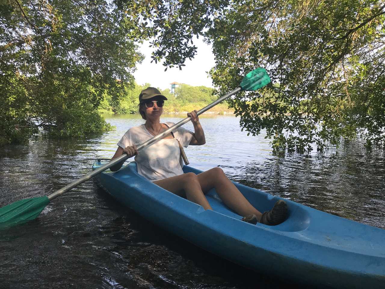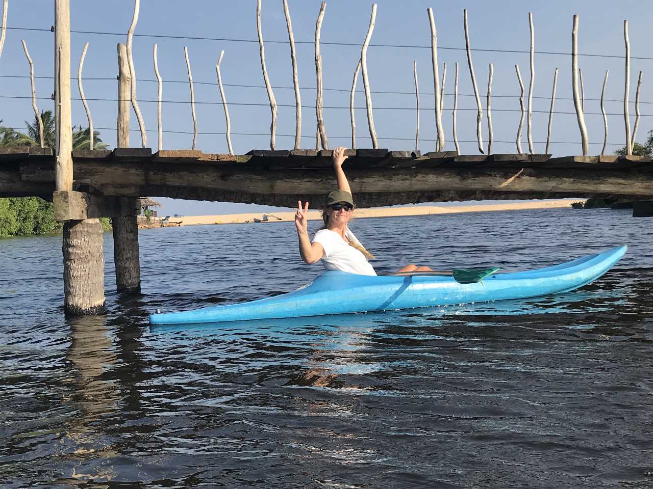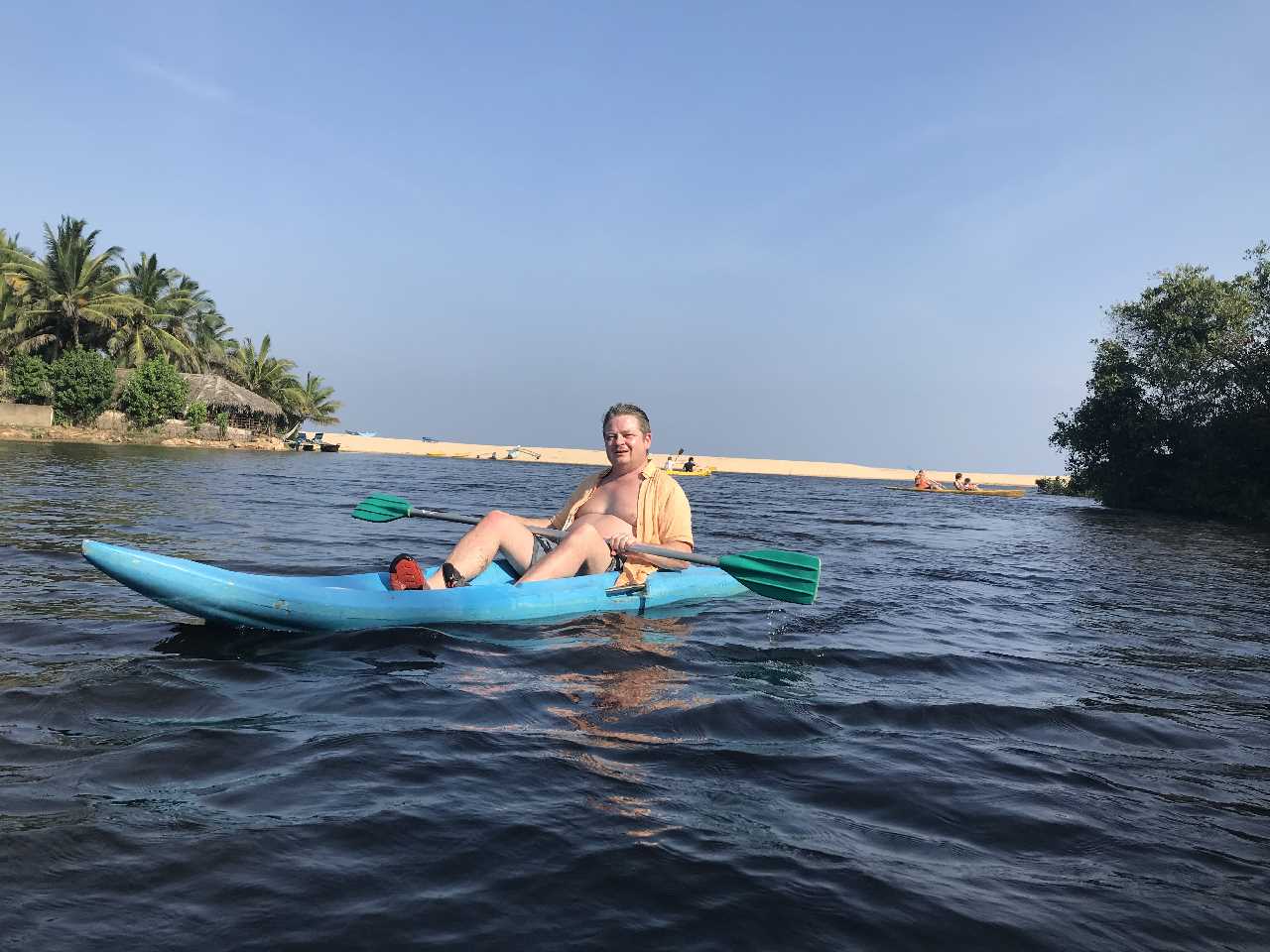 Eine Kanufahrt in der Mangrovenlagune beschert uns einen grossen Fischreiher und eine Affenfamilie die über die Brücke rennt. Fantastisch! Was für ein schöner Tag. Abendessen mit Sonnenuntergang, Salat Hawai und gegrilltes Huhn mit Stock und Gemüse. Zufrieden ab ins Bett.