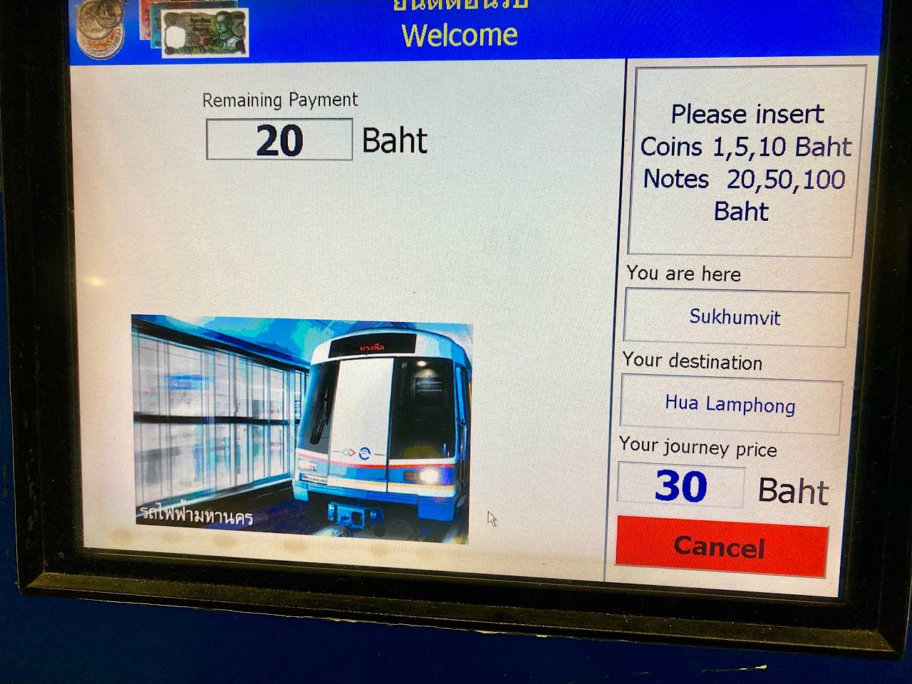 Gemütlich nur mit Handgepäck zotteln wir zur MRT U Bahn, für sechs Stationen zahlen wir 30 Bath pro Person. Es sind heute wenig Menschen in der Bahn, und ich bin froh wieder auszusteigen, denn die Klima war sehr kühl eingestellt. Das U Bahn fahren ist gut beschriftet, also problemlos machbar und sehr günstig und auch schnell um sich in Bangkok sich zu bewegen! Als kleiner Tipp 😉