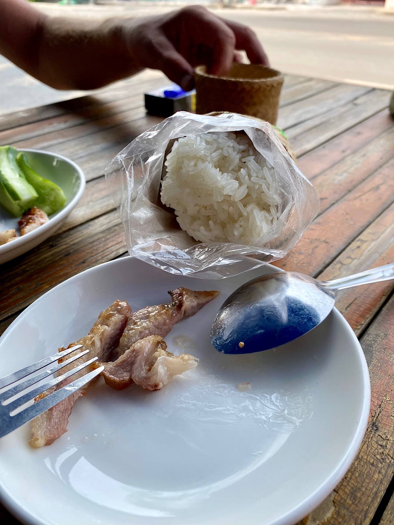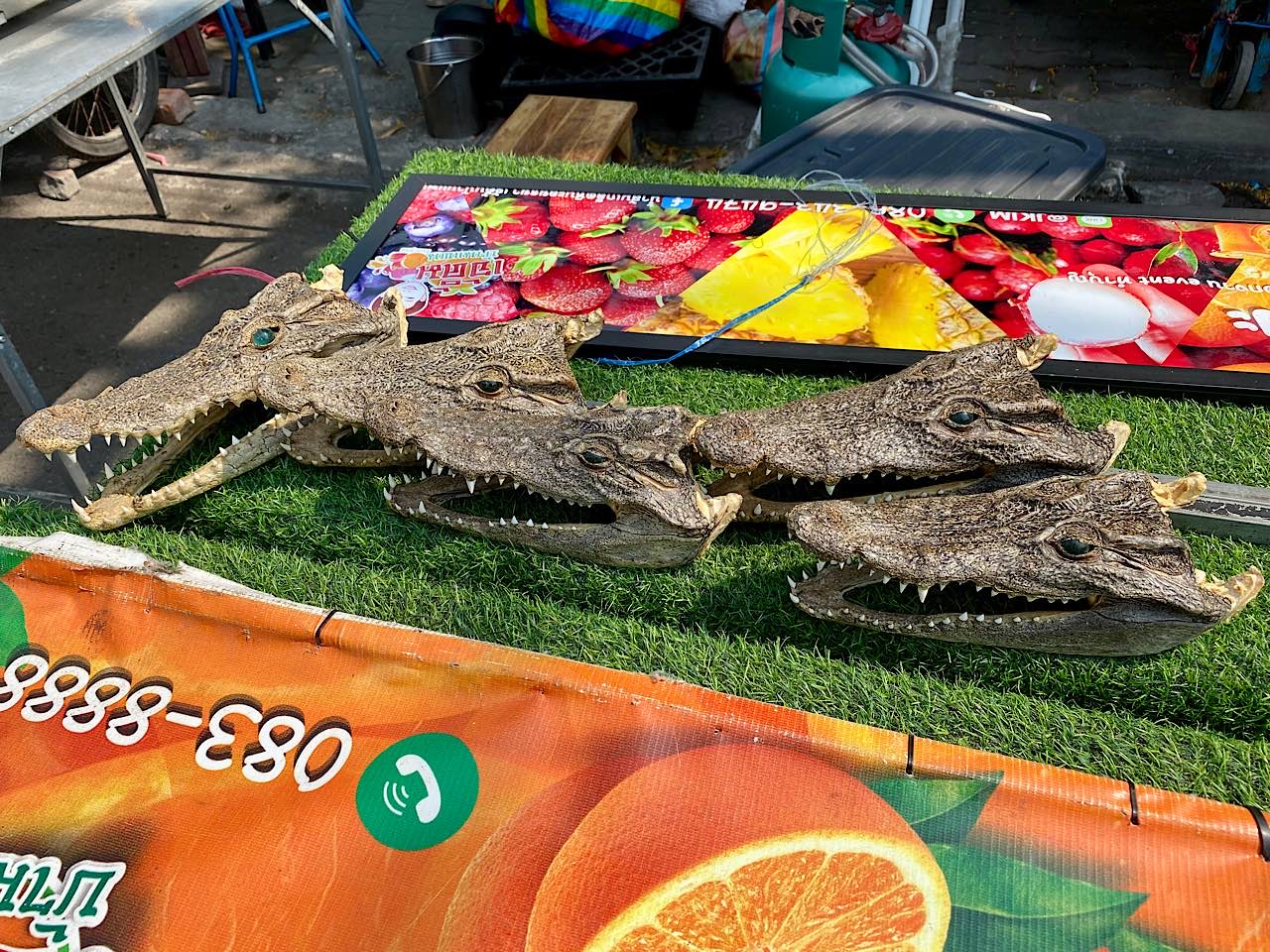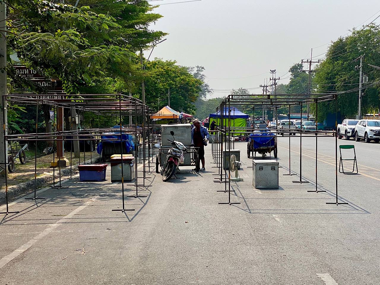Dann zotteln wir durch den Nachtmarkt, der bei unserer Ankunft im Aufbau war. Unzählige günstige Leckereien. Stefan isst zwei Reiswürste ( 20 Bath ) und Pilze ( 50 Bath ) , Babsea geniesst einen frischen Fruchtsaft (35 Bath ) Alles war köstlich 🤩