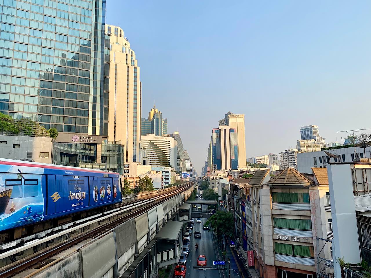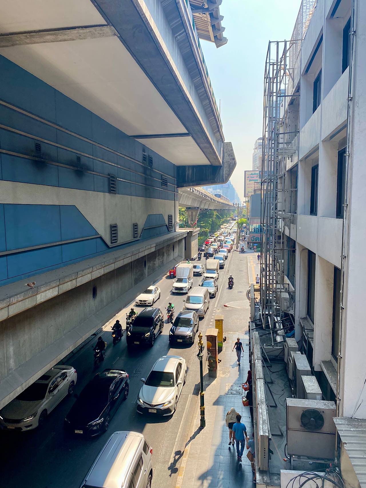 Nach dem Morgenritual schnuppern wir Bangkok Luft. Wir neben die Hochbahn für zwei Stationen (50 Bath beide) für ein Ticket. Wie auf der Strasse herrscht hier Hochbetrieb und wir finden kaum Platz zum stehen 😄 Wir frühstücken im Bekannten super leckeren Suppen Restaurant. Endlich kommen wir in den Genuss der „Weihnacht Duft“ Suppe und Shrimps Cakes mit Blick auf die Strassenküche und voll im Getto der Nana Place….Es war sensationell gut und wir haben mit Kaffee Frappé und Cola 330 Bath bezahlt. Weiter zu Fuss im beachtlichen Getöse der extrem befahrenen Strassen gehen wir zum Terminal 21. Ein Einkaufszentrum das nach Städten pro Level benannt und eingerichtet ist. Eine Wucht von anderen Eindrücken zu unseren Einkaufszentren! Wir holen uns eine Verlängerung unseres AIS Telefon Anbieters. Überraschend zahlen wir nur 500 Bath pro Kopf für unlimitierten Datenverbrauch für einen Monat. In Ko Lipe haben wir 800 Bath bezahlt 🤪