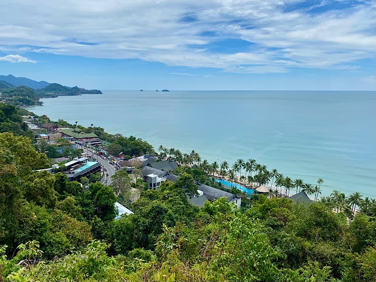 Nun, alles ist super gelaufen 🙏🏼 Wie Profis haben wir die Fahrt überstanden 👍🏼 Ein erster Halt nach der gruseligen Kurve: Kaibae Aussichtspunkt 🤗 Eine wahrhaftige schöne Aussicht die wir da geniessen dürfen! Dann sehen/finden wir unsere so oft im 2018 besuchte Pilot Bar….wie es so ist….gerade heute haben sie geschlossen 😄 so trinken wir etwas in der Bar nebenan, welche im 2018 noch nicht da war. Allgemein hat es viel mehr Restaurants und Baren seit unserem letzten Besuch vor sieben Jahren! Auf dem Weg sehen wir Elefanten…wundervolle Tiere, die leider angekettet und eingeschlossen sind….wir halten beim ersten Tempel, der Wat Khlong Phrao. Leider geschlossen, doch sehr schön anzusehen 😍 Der nächste Halt gilt für den Shrine of Admiral Krom Luang Jumborn Khet Udomsaki, mit Flag Gewehren aus Örlikon, zwei Stück neben dem Shrine und auf das Meer gerichtet. Auch hier ist es eine Augenweide von Ausblick 😇 Weiter geht es zum Wat Khlong Son, der verlassen und sehr hübsch ist. Faszinierend dabei der grüne Elefant und auch die Stille die uns umgibt ♥️