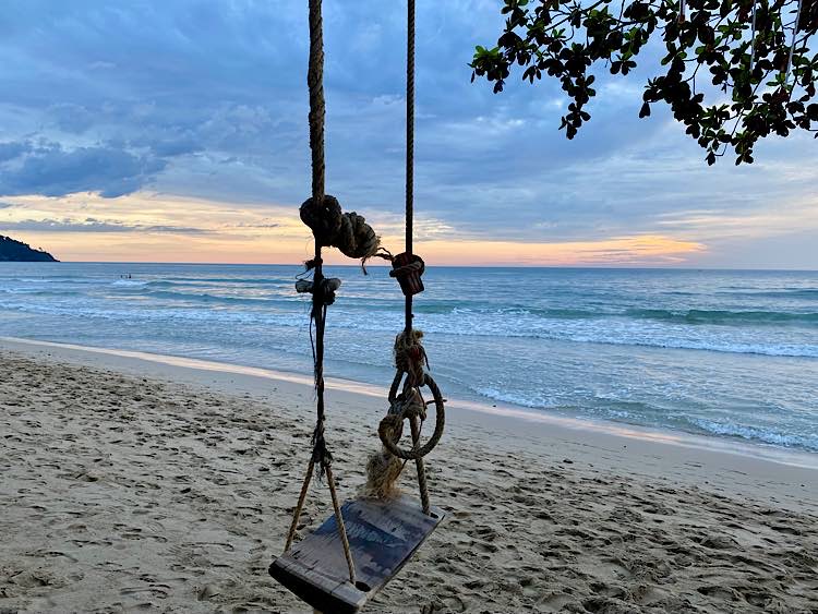 Wir Düsen weiter und lassen uns im Shambhala Beach Bar & Restaurant nieder. Trinken etwas und geniessen das gehobene und nicht gerade thailändische Ambiente hier. Der Strand ist schön, doch die Loneley Beach ist besser!