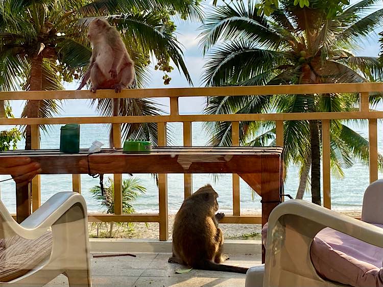 Stefan geht Skirennen schauen und ich geniesse die Sonnenstrahlen 😍 Ich hole mir noch einen Kokosnuss Shake, auf den Heimweg….der ist mir soeben von einem Affen auf der Terrasse entrissen wurde. Ich zittere noch ganz doll 😅😇 Mensch bin ich erschrocken 😮 siehe Bild 😇 Er kam nochmals zurück um die verschüttete Leckerei aufzulecken mit einem Kumpel versteht sich ! Dann chillen die Affen auf unserem Balkon und ab an den Strand um neue Leckereien zu finden, was sie auch gefunden haben. Herrlich zuzuschauen aus der Ferne, doch es sind wilde Tiere und mit ihnen will man definitiv keinen Streit anfangen, also lassen die Beklauten Menschen, den Affen ihr Essen zu naschen 👍🏼