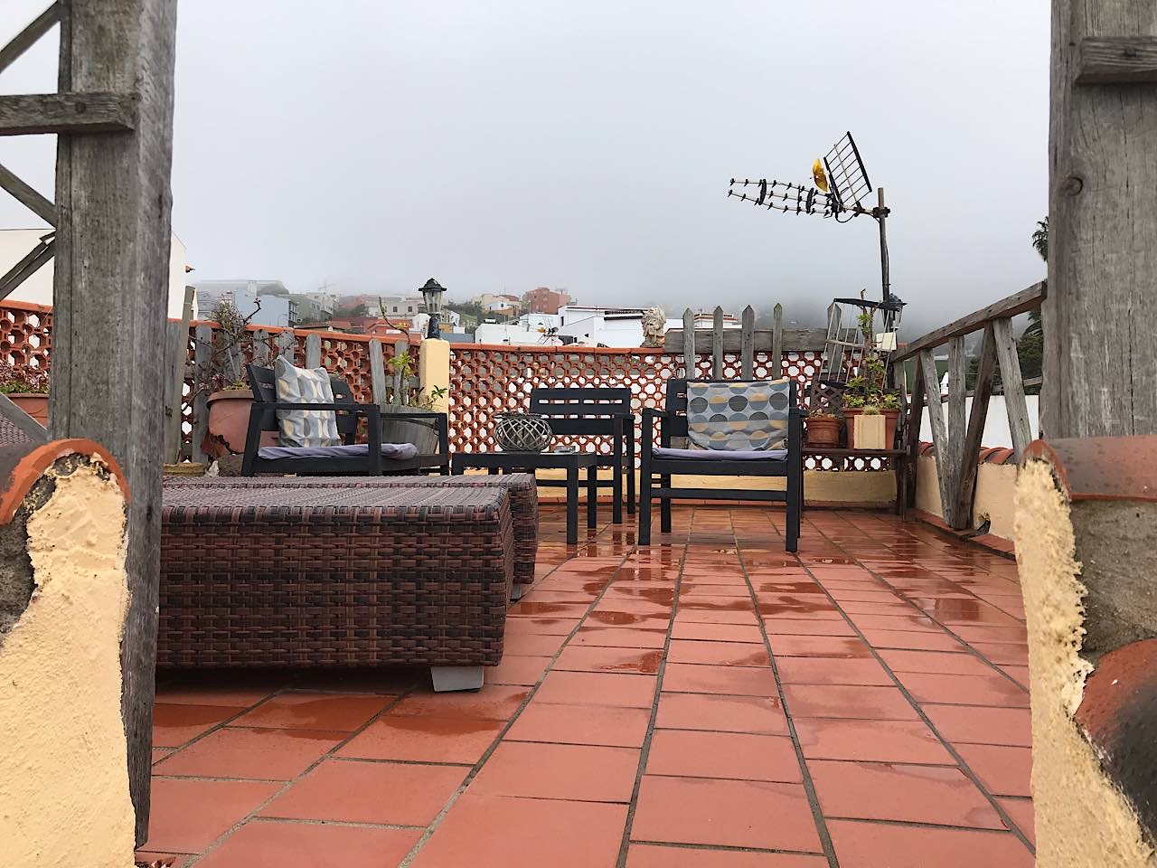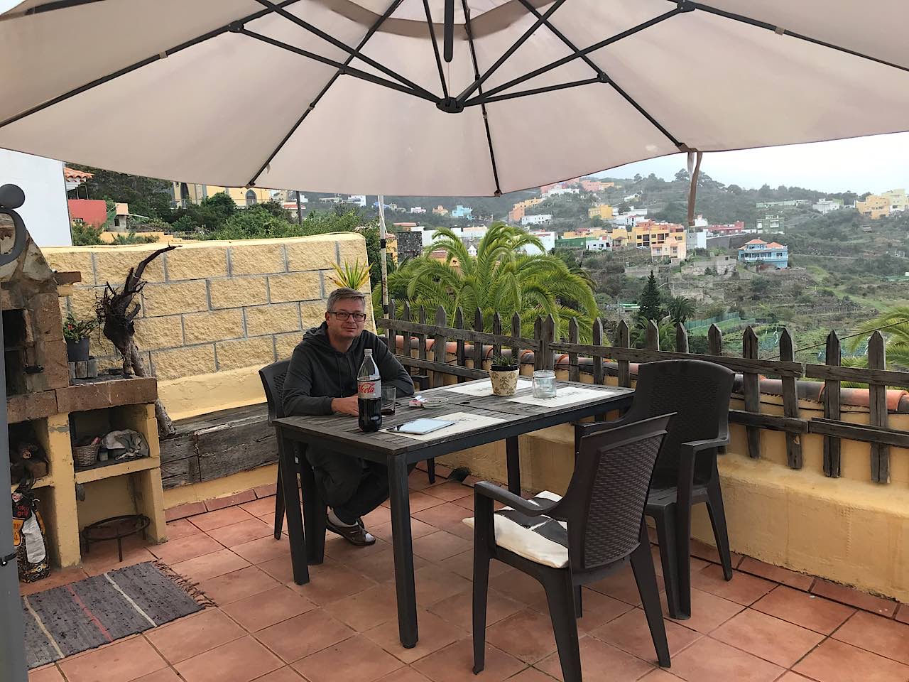Ausflug zum Charco del Viento, wunderbar 😊 die Strasse super eng und Babsi hupt bei jeder Kurve. Drei Autos kamen uns entgegen und es ging immer haarknapp gut 😇Eine enge Strasse mitten von Bananenplantagen die uns zum Meer führt. ( 10min von zu Hause ) Die Spanier sind so cool, denn ein riesen Parkplatz in mitten vom Nirgendwo mit schöner Anlage bis zum Meer. Die wissen wie es den Tourismus erfreut! Hier könnte man fast überall ins Wasser, das bewölkte Wetter lädt nicht dazu ein....leichte Regentropfen lassen uns die Erkundung abblocken, wie auch Stefans Kopfschmerzen. Wasser kaufen und ab @ home. Das Wasser vom Hahnen ist trinkbar, erinnert uns an Amerika, denn es ist Chlorhaltig! Also kaufen wir lieber acht Liter Wasser für 99 Cent. Der Sonnenschirm wird zum Regenschirm umgenannt und benutzt , so sitzen wir auf der Terrasse, natürlich gut eingemummelt unter meistens starkem Nieselregen. Temperatur mässig etwa zwei Grad kühler, also 18 Grad....😅wir schauen begeistert der Stimmung zu mit dem Nebel der nun aufzieht....am späteren Nachmittag mussten wir ins Home Cinema flüchten, der Regen prallte nur so vom Himmel. Netflix sei dank 😅😏😉