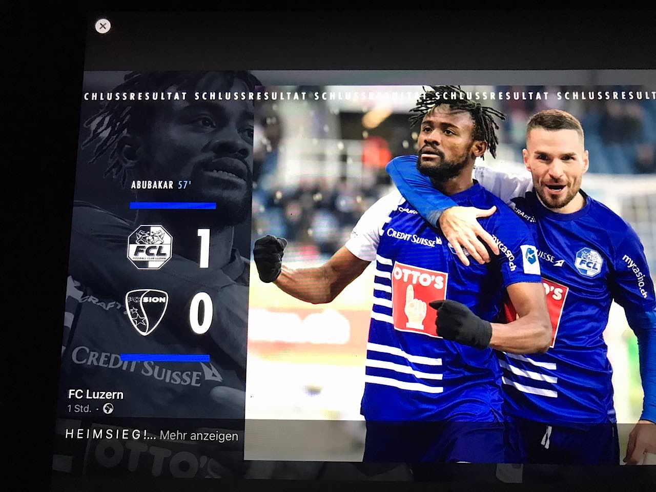Der Abend beginnt mit einem Sieg von 1:0 Luzern vs Sion. Stefan ist happy über diesen verdienen zweiten Sieg der Saison.