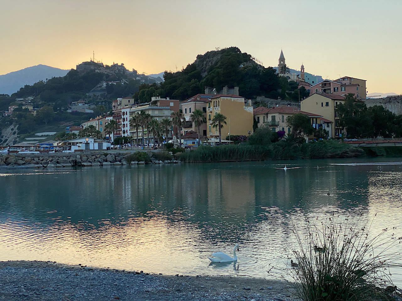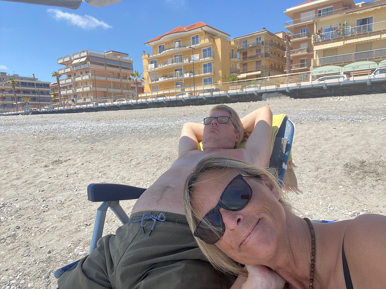Nach 20.00 Uhr gehen wir mit dem Ziel eines Abendessen los. Wir bleiben an einer coolen Bar, im Miramare Beach wortwörtlich hängen, denn zum Apéro ( wie in Italien 🇮🇹 Normalität) gab es da etwas „ kleines„ gratis dazu… mit dem Resultat, dass wir kein Abendessen mehr brauchten 😅🤪😉 Kostenpunkt für 4 Drinks 32 Euro !! Wir finden, so günstig haben wir noch nie gegessen in Italien :)
