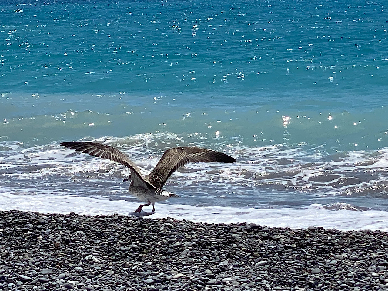 Ab to the beach ❤️ wir geniessen das Wasser, das Heute in einem schönen hellblau scheint. Für einen kurzen Moment ziehen Wolken herbei, und wir denken schon, nun kommt der Regen. Nix die Maus, es wird wieder sommerlich blau im Himmel und die Sonne färbt unsere Körper mit einem Rotstich ein. Also einen von uns, und das trotz 50 Sonnenschutz 😅😇😅 und das ständig im Schatten 😜😉 Highlight neben dem wundervollen Meer : Eine graue Schönheit von Möwe, lässt sich auf ein Fotoshooting ein, ganz zu meiner Freude und Dankbarkeit ! Diese Segler zu beobachten, ein wundervoller Zeitvertreib der super Art ♥️