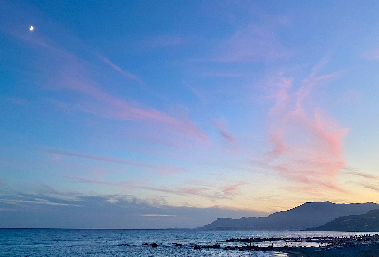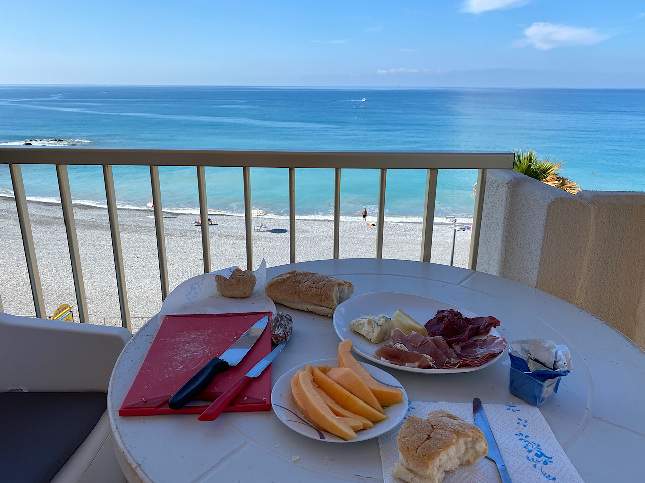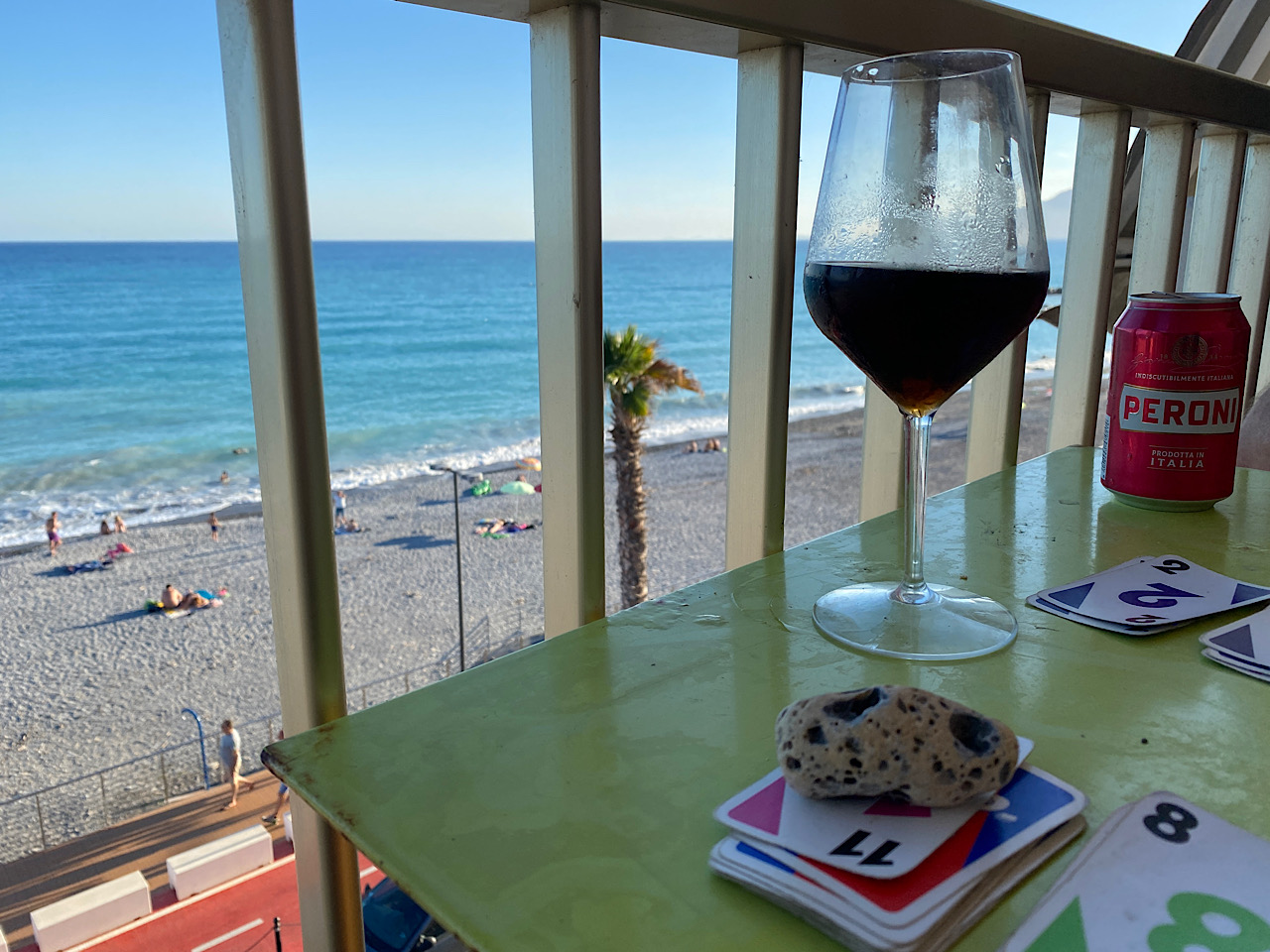 Um 18 Uhr gehen wir back home, geniessen einen Apéro auf Balkonia, denn wir wollen am Abend essen gehen. Und hier zu Hause mit diesem Traum Blick auf das Mittelmeer können wir einen Apéro nehmen, ohne all zu gesättigt weiter zu gehen !! Viva Italia !!