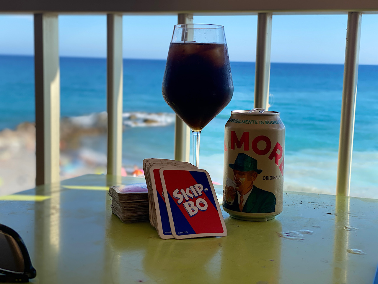 Eine Runde Apéro Skip Bo dazu, mit neuem Spielstand von : 97:91 Gratis coole Musik in beachtlicher Lautstärke von der Beach Bar linker Hand 😜🙌😂