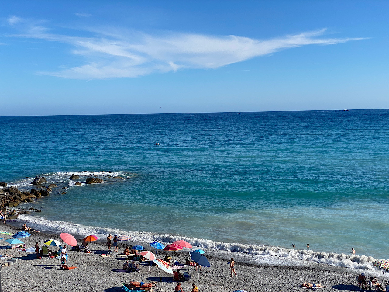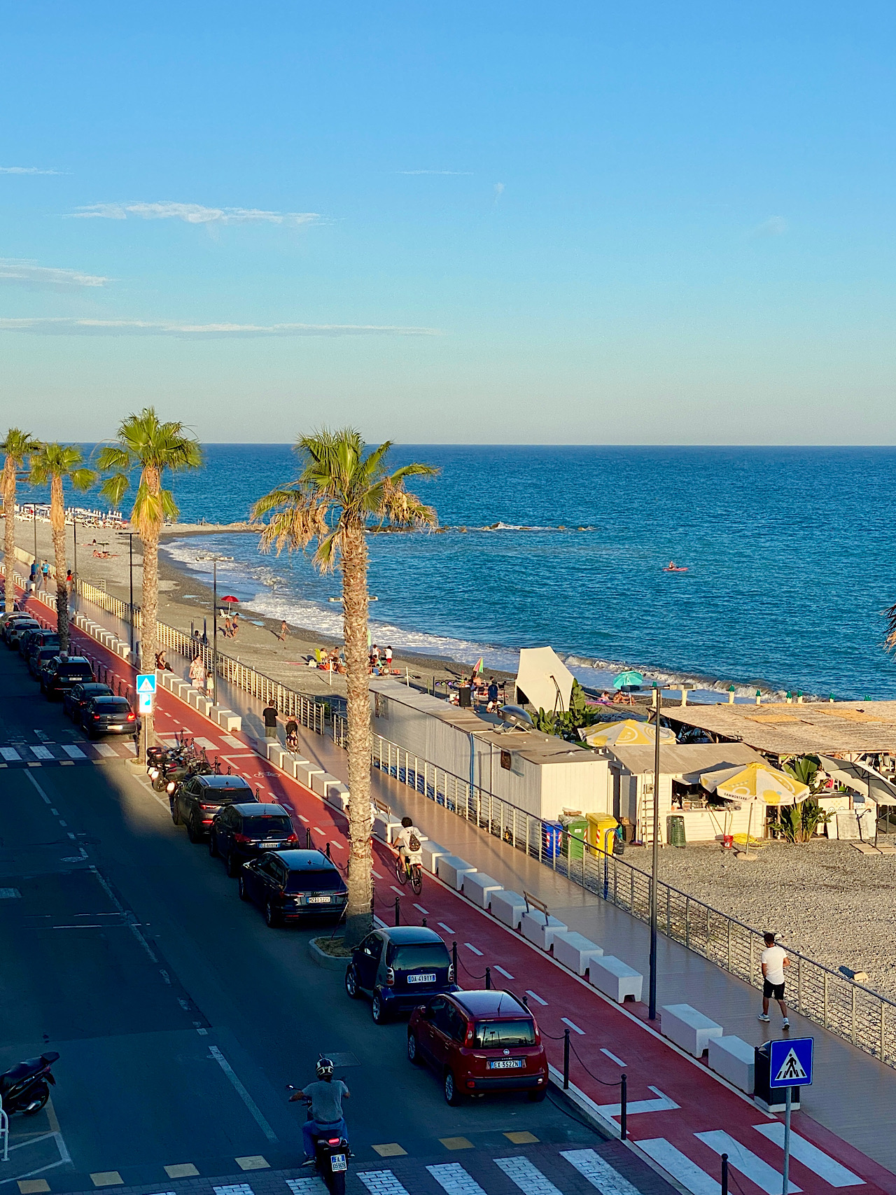 Ein gemütliches Morgenritual auf der Terrasse, die vom Schlafzimmer,der Stube, der Küche und vom Kinderzimmer aus zu erreichen ist 😍 ein schönes Appartement schon mit einigen südländischen Rostbeulen ( @Stefan Göttli: nicht unter dem Balkon 🙂↔️) Die Küchenutensilien machen keinen Bock zu kochen, gut wollten wir das gar nicht in dieser Woche 😅 Es hat ganz antik einen Durchlauferhitzer. Die Abwaschmaschine und die Waschmaschine haben wir nicht genutzt, wie die drei Haartrockner 😊 Die Lage dieser Liegenschaft ist einfach sehr gut! Ausblick vom dritten Stock ( mit Lift 🤪 ) wunderschön ♥️ Die Strasse überqueren, den Velo und Fussweg und schwups ist man am Strand. Der Lärm ist für uns weniger zur Gruobstrasse und das Meeresrauschen ist einfach so beruhigend und stark 💙 Das fehlt mir ganz besonders in der Schweiz, das Meer mit seiner unendlichen Schönheit 💙Dazu die wunderbaren schwebenden Möwen die immer wieder über uns hinweg segeln, eine Wohltat 😍