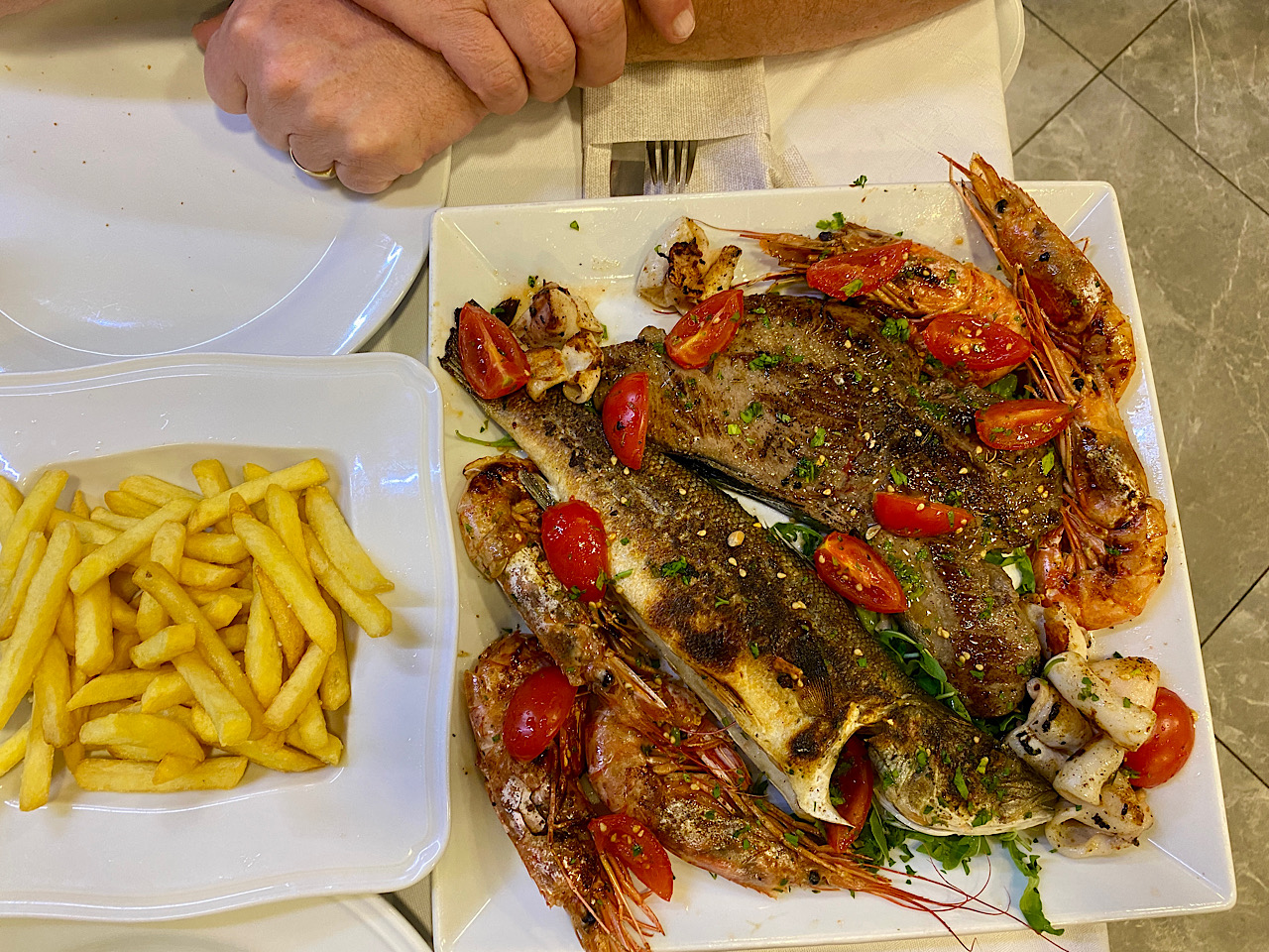 Um 21.00 Uhr gehen wir zum Abendessen. Wir sind in zwei Minuten vor Ort und essen im da Mimmo wie auch schon gewohnt köstlich 😋 die Begrüssung war sehr herzlich, der Service Fachmann hat uns wieder erkannt, wie auch der Ägyptische Chef. Den Ennetmoos Ägypter haben wir nicht mehr getroffen…leider. Mit 64 Euro weniger und einer fantastische grillierten Grill Fisch Platte und einem halben Liter Rosé im Bauch gehen wir um 23.00 Uhr @ Home. ( ohne Cinque Cento ) Bloggen mit lautstarker 1984 Musik und Meeresrauschen im Ohr ist schon noch hammer cool, dies mit 21 Grad und dem Mond der sich im Meer spiegelt. Thats life !! You spin me right run run Baby…..an other duster….